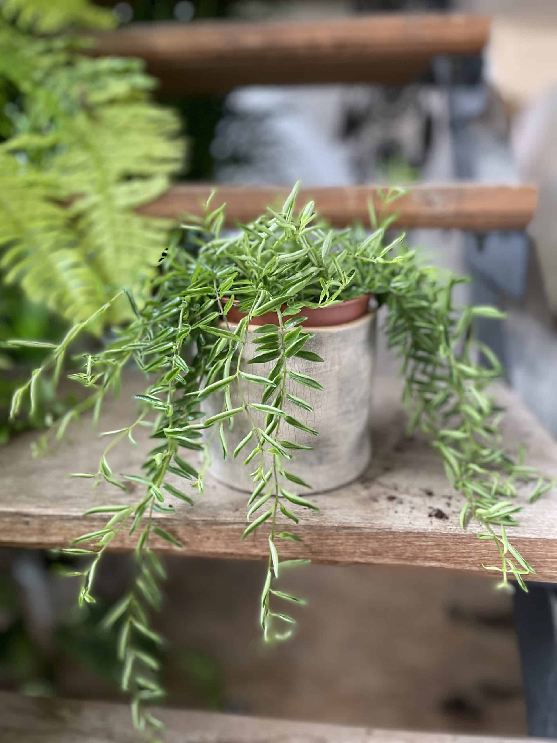 Aeszynantus o gęstej czuprynie podłużnych, sukulentnych, łódeczkowatych liści. Wyobraź sobie to cudo na górnej półce lub w makramie. Jego uroda będzie tam najlepiej widoczna.