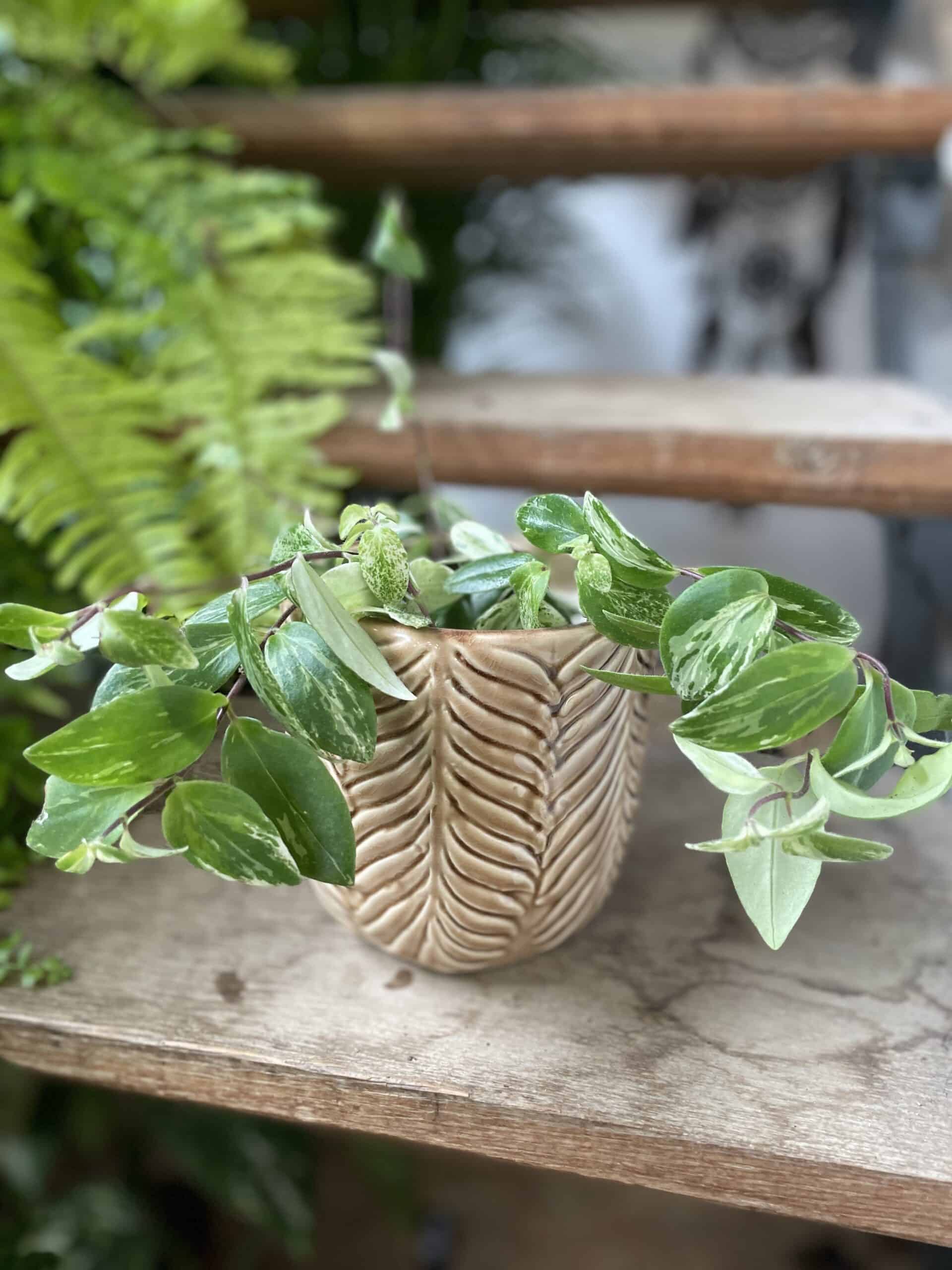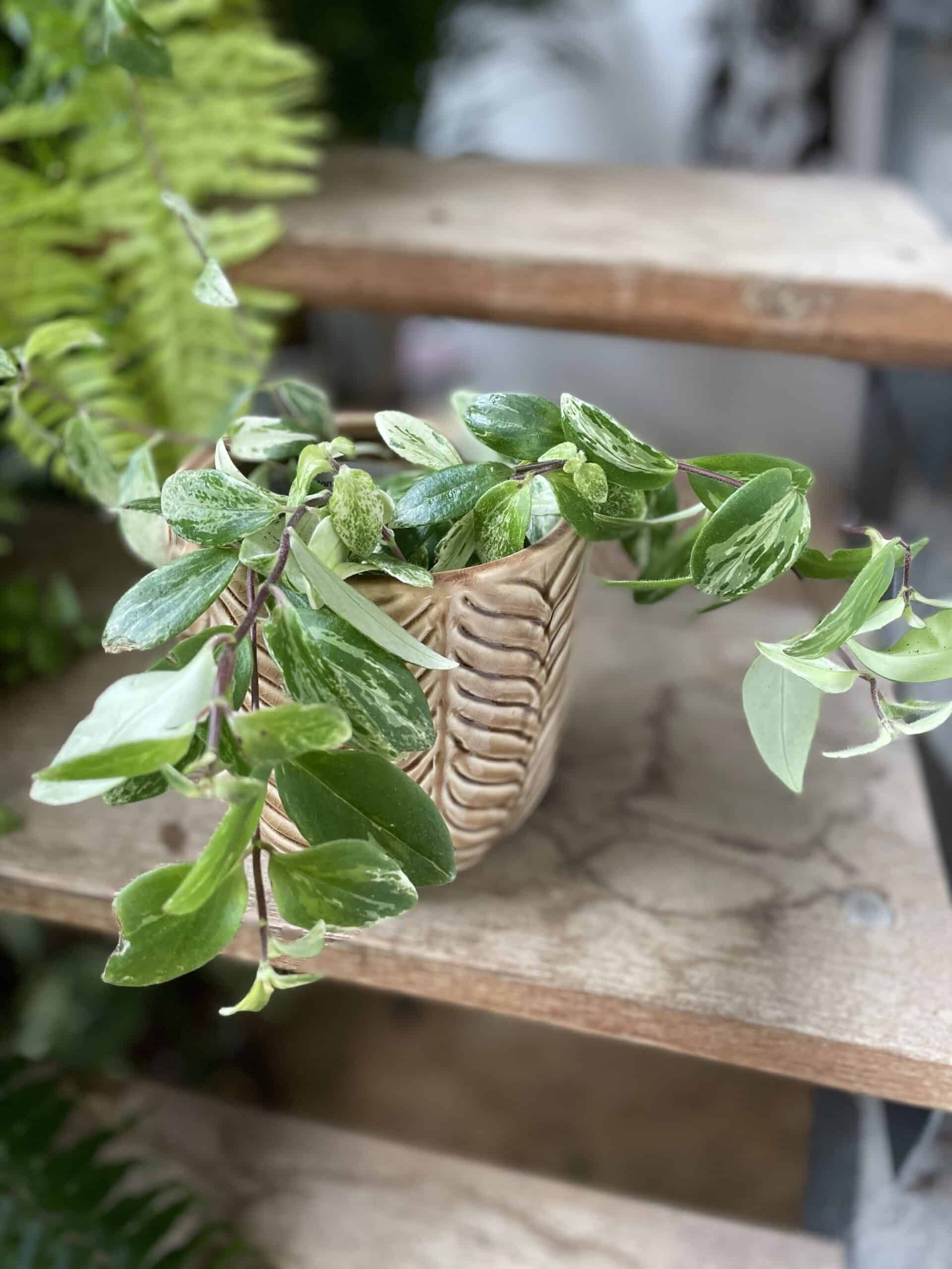 Bujny epifit pokryty malowniczą, nieregularną wariegacją, która sprawia, że każdy liść wygląda inaczej. Piękny, zwieszający pokrój gwarantuje, że ten Aeschynanthus będzie wspaniale prezentował się w wiszących donicach i makramach. Dodatkowego uroku dodają mu bordowe pędy, kontrastujące efektownie z bielą i zielenią liści.