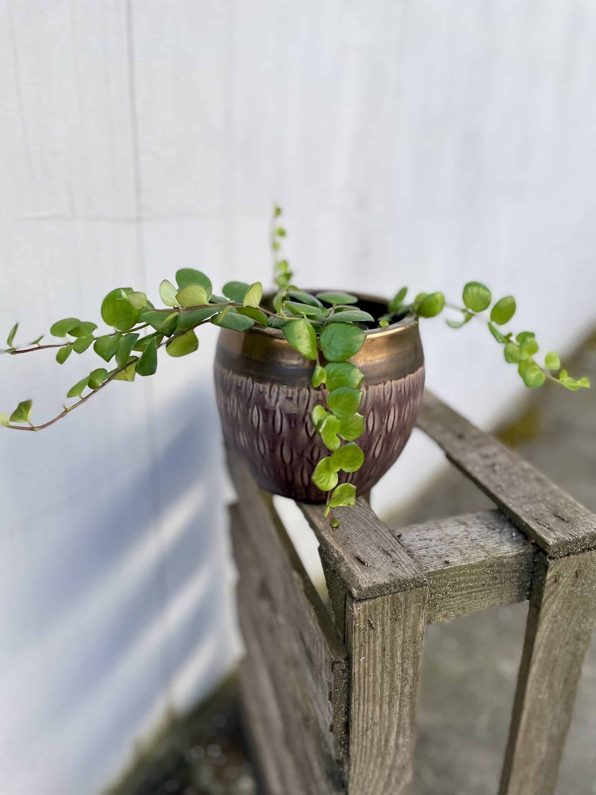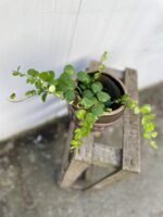 Aeschynanthus Pink Polka – przepiękna odmiana Eszynantusa o mięsistych, zaokrąglonych liściach i zwieszających się pędach. Idealny na wysoką półkę lub do plecionej makramy. Przy odpowiedniej pielęgnacji może zakwitnąć różowymi kwiatami.