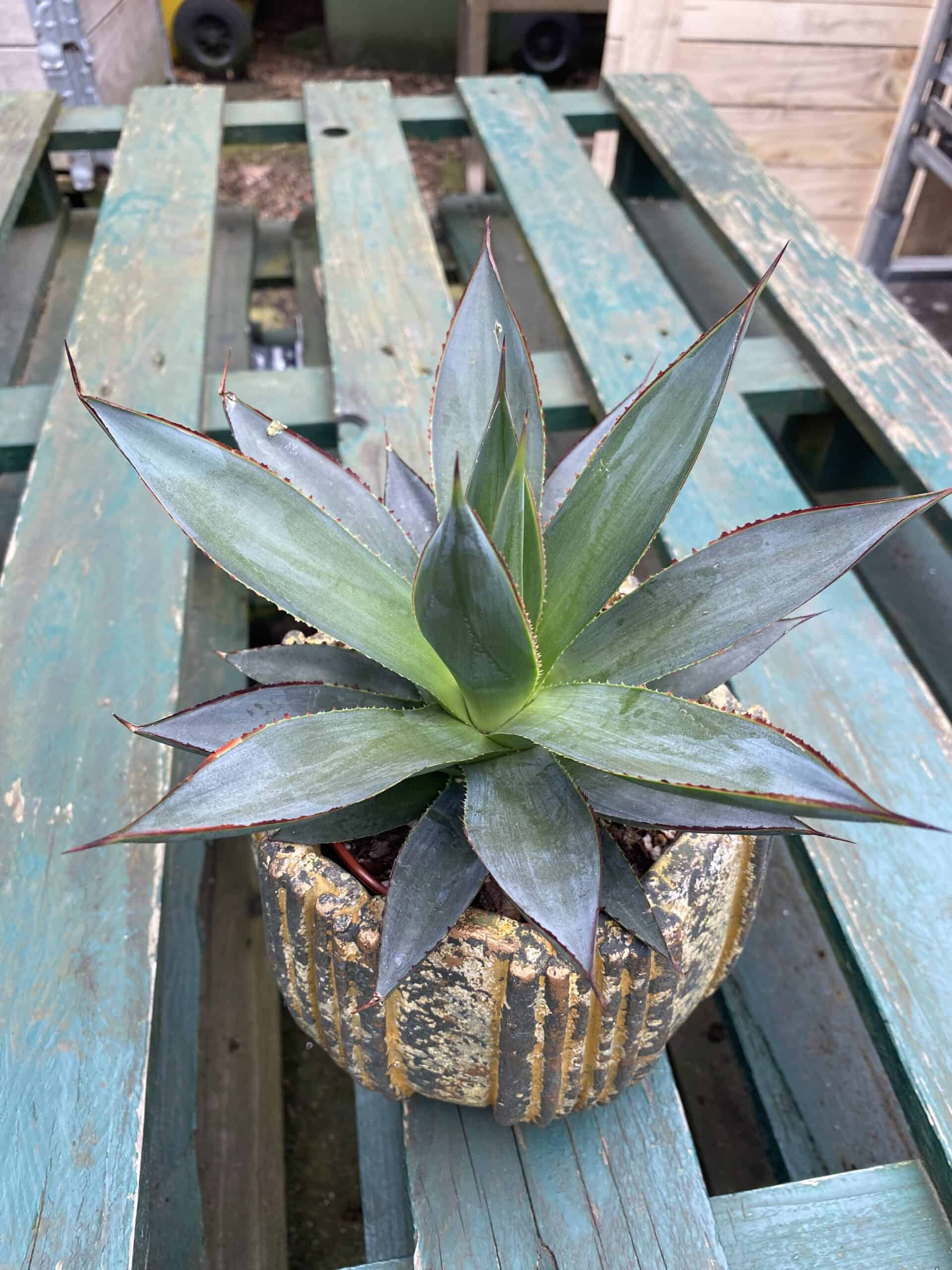 Agawa Shaka Zulu – jej cechy charakterystyczne to zwarty, rozetkowy pokrój i mięsiste, lekko niebieskawe i spiczaste na końcach liście. Nie wolno zapomnieć również o czerwonych marginesach, które są wyrazistym akcentem. Bardzo elegancka odmiana, a przy tym bardzo łatwa w uprawie i wymagająca jedynie okazjonalnych dawek wody – jak na sukulenta przystało.
