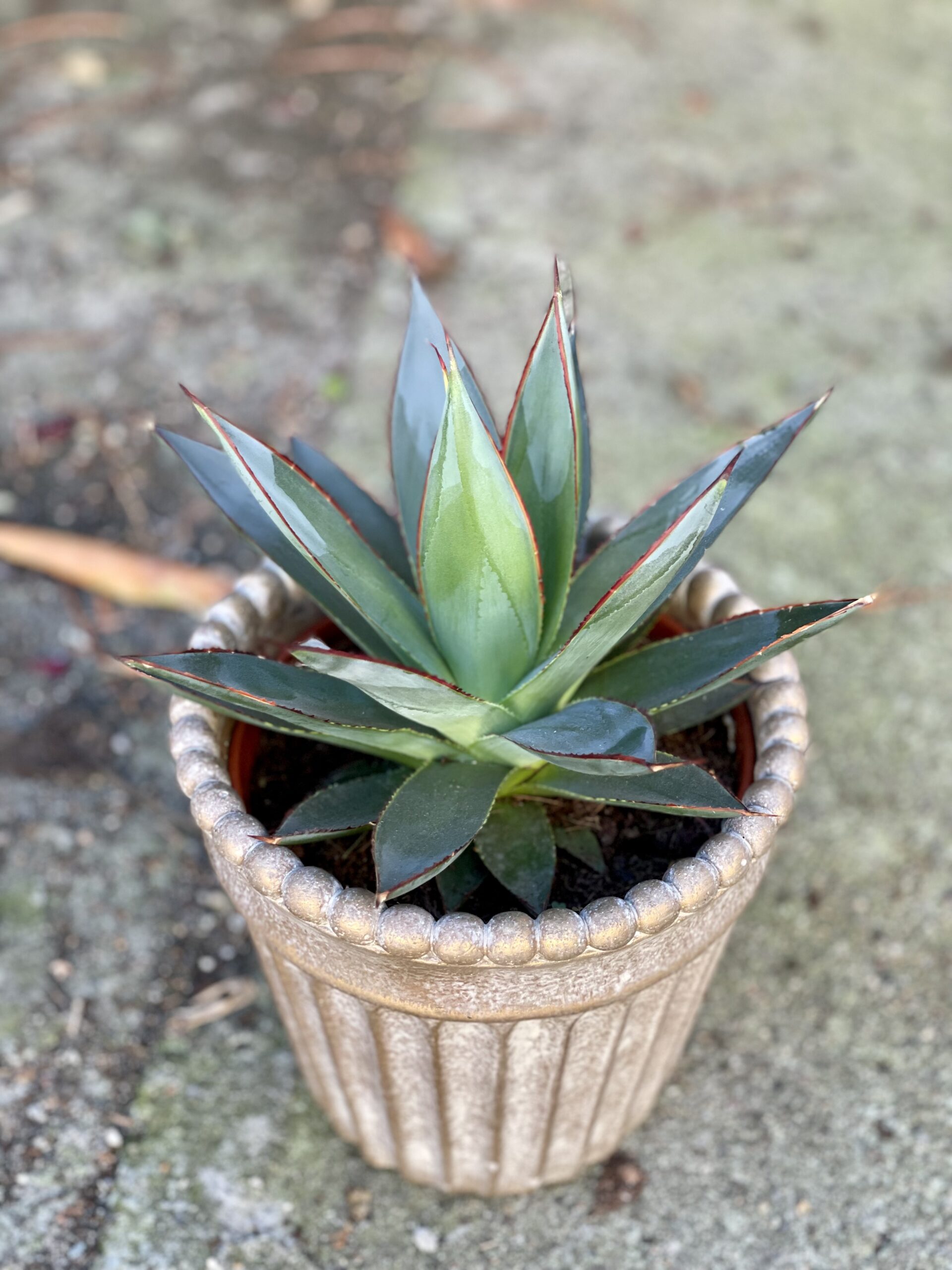 Agawa Shaka Zulu – jej cechy charakterystyczne to zwarty, rozetkowy pokrój i mięsiste, lekko niebieskawe i spiczaste na końcach liście. Nie wolno zapomnieć również o czerwonych marginesach, które są wyrazistym akcentem. Bardzo elegancka odmiana, a przy tym bardzo łatwa w uprawie i wymagająca jedynie okazjonalnych dawek wody – jak na sukulenta przystało.