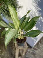 Aglaonema o pełnym rozmachu pokroju i przykuwającej wzrok ornamentyce. Długie, srebrzyste liście pokryte są ciemnozielonymi cętkami. Ich rysunek przypomina nieco zdobienia na pawich piórach lub futrze geparda.