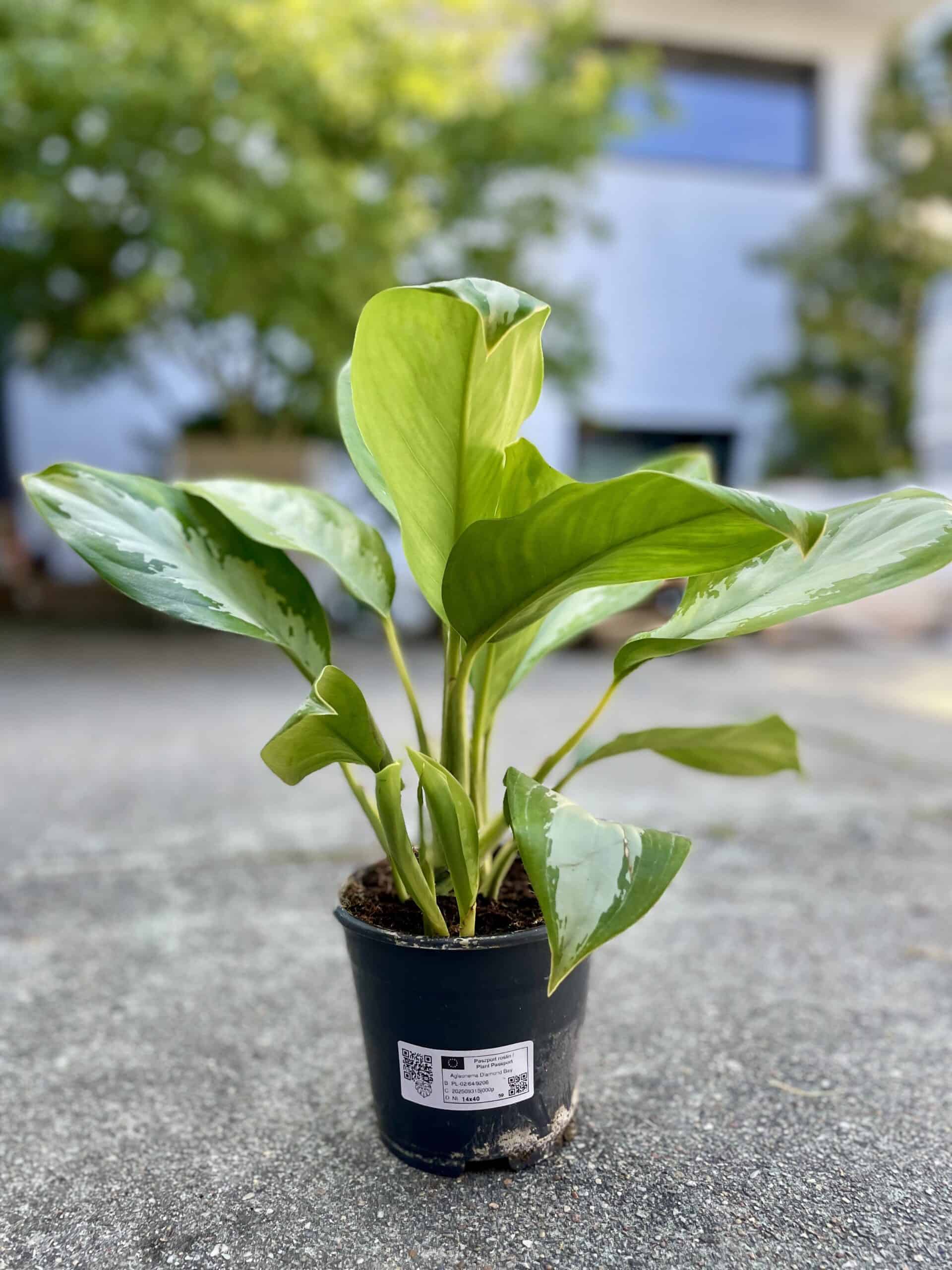 Widoczna na zdjęciu roślina: Aglaonema Diamond Bay ma wysokość około 40 cm. Jej doniczka ma 14 cm średnicy oraz 14 cm wysokości.
