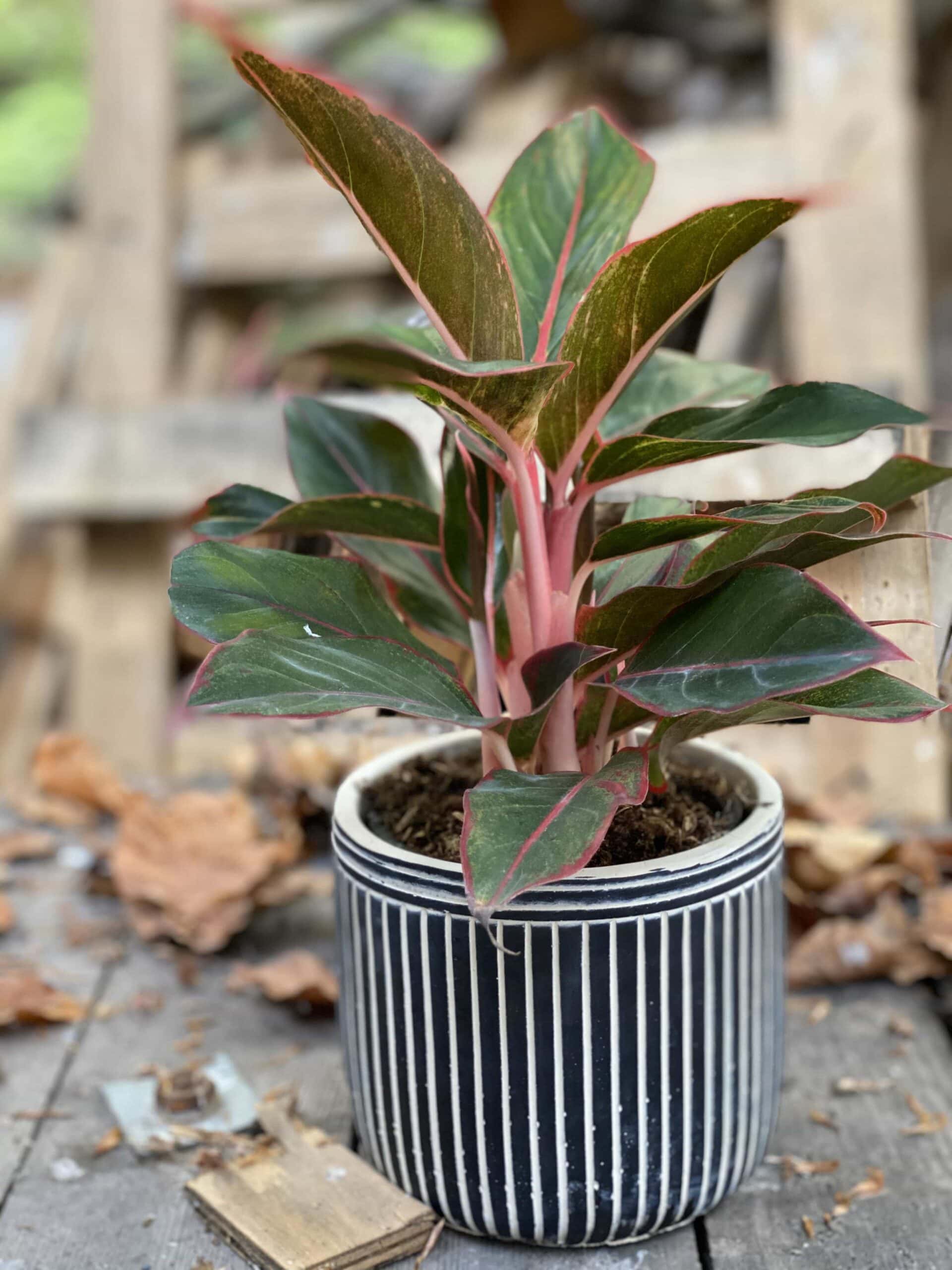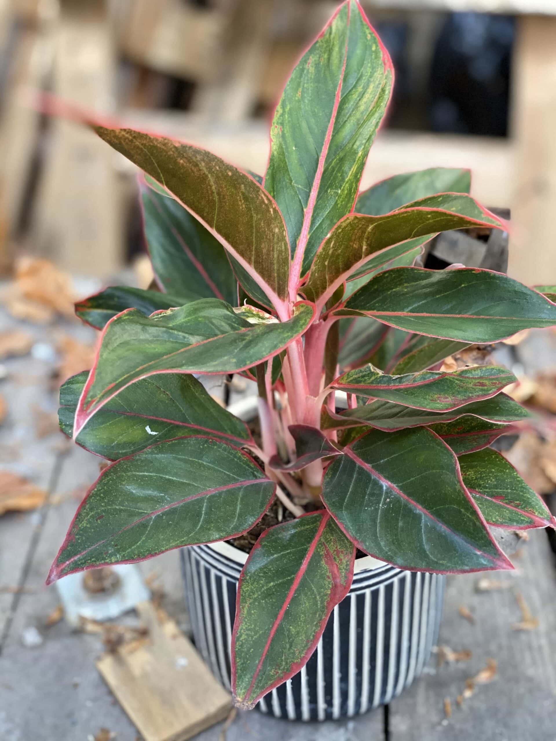 Bardzo oryginalna odmiana Aglaonemy, w której głęboką zieleń przełamują różowe akcenty w postaci obwódki zewnętrznej i centralnej żyły liścia. Różowe są też jej łodygi, a cała roślina oprócz świetnej kolorystyki ma też gęsty, atrakcyjny pokrój.