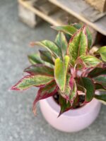 Bardzo oryginalna odmiana Aglaonemy, w której głęboką zieleń przełamują różowe akcenty w postaci obwódki zewnętrznej i centralnej żyły liścia. Różowe są też jej łodygi, a cała roślina oprócz świetnej kolorystyki ma też gęsty, atrakcyjny pokrój.