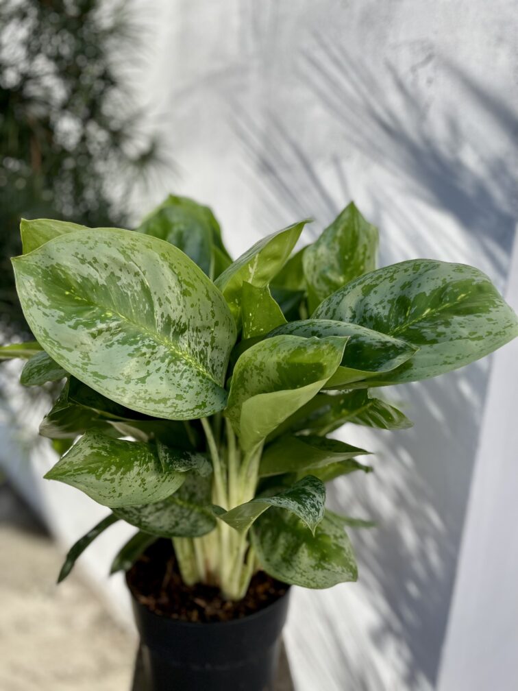 Widoczna na zdjęciu roślina: Aglaonema Lemon Mint ma wysokość około 50 cm. Jej doniczka ma 19 cm średnicy oraz 18 cm wysokości.