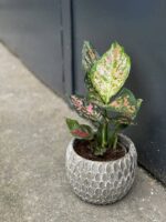 Widoczna na zdjęciu roślina: Aglaonema Prestige ma wysokość około 30 cm. Jej doniczka ma 12 cm średnicy oraz 11 cm wysokości.