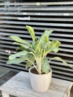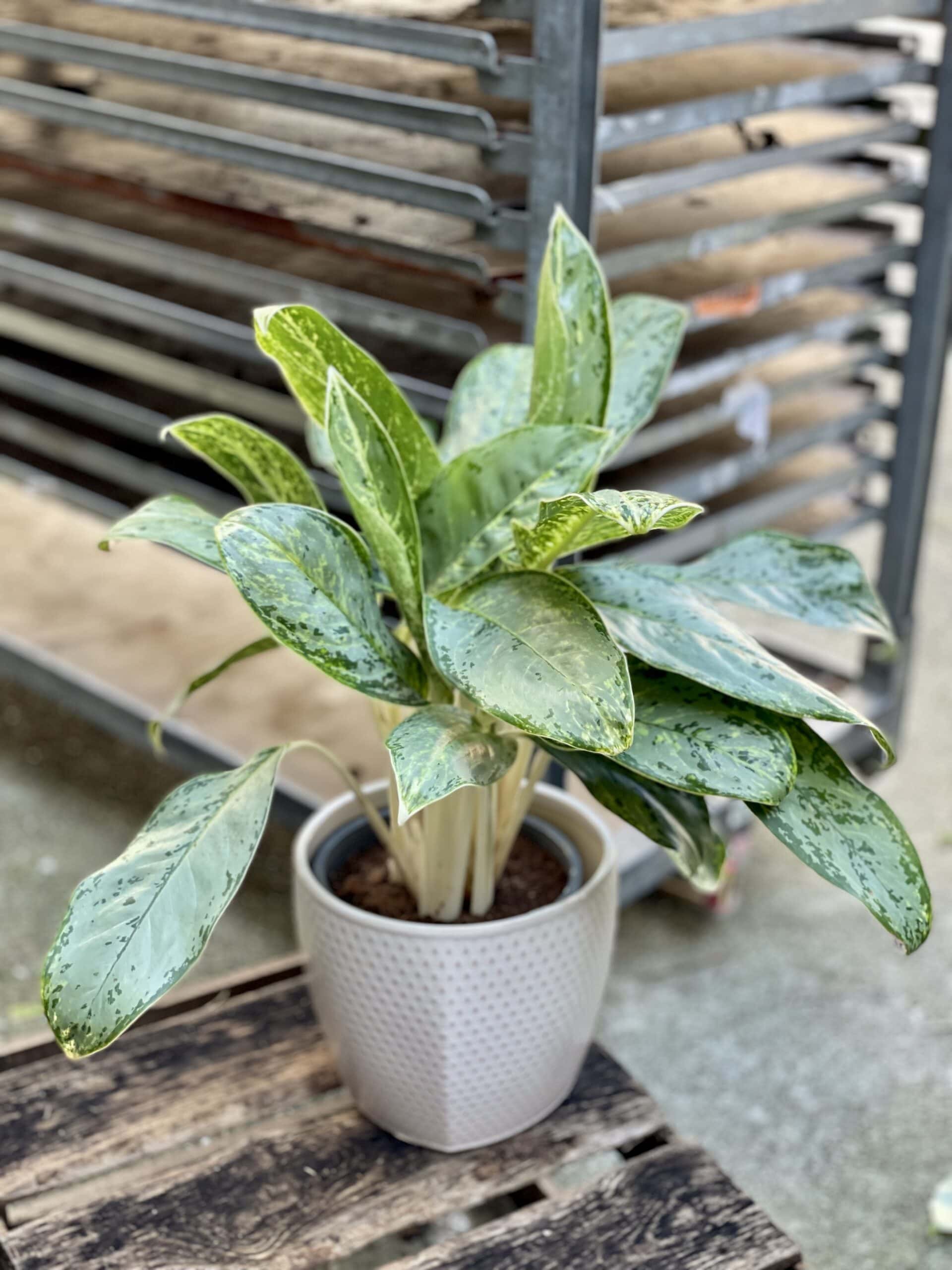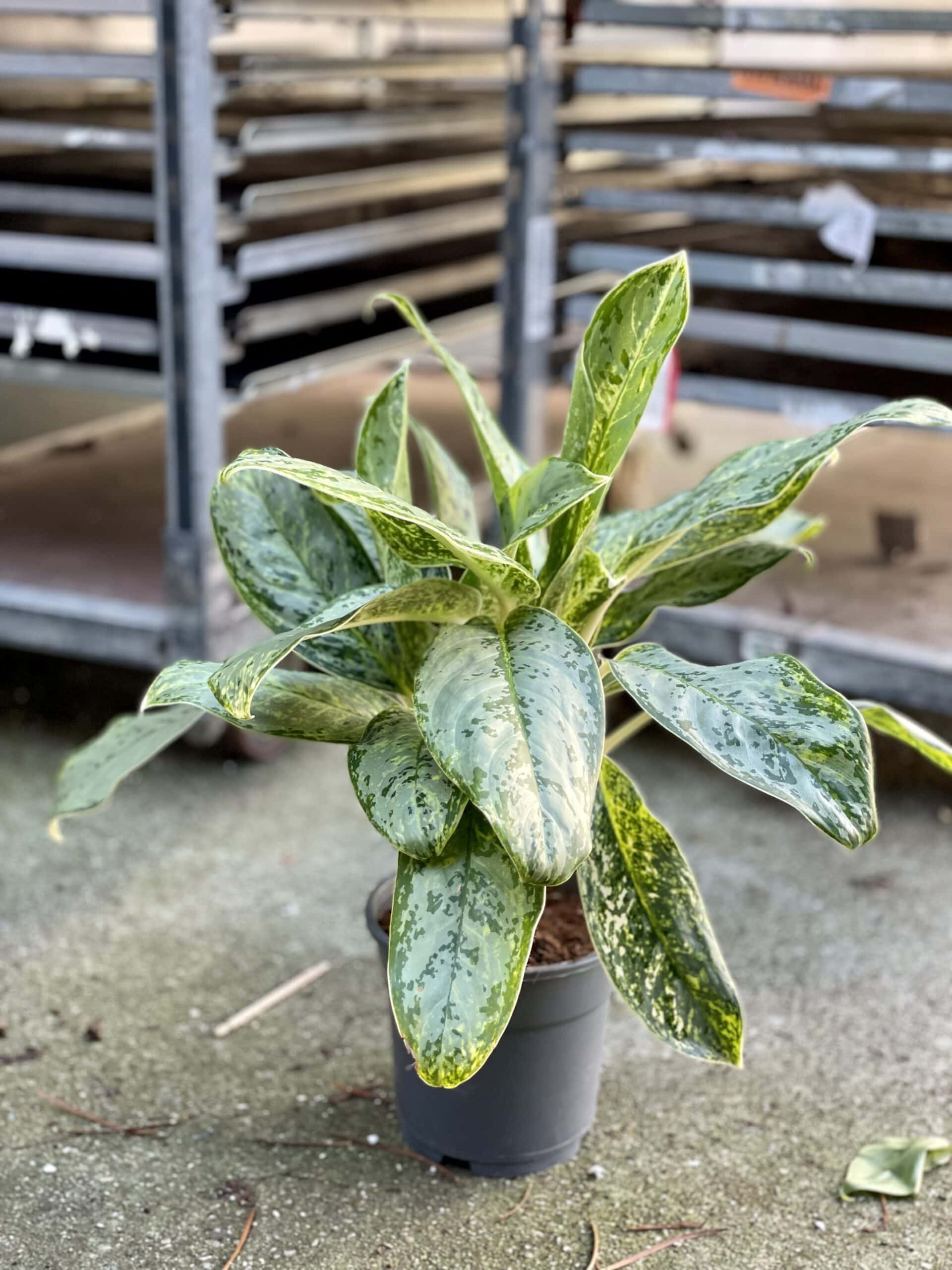 Aglaonema Royal Diamond to prawdziwy królewski diament wśród roślin tropikalnych! Na kremowych łodygach wznoszą się malowniczo ubarwione, duże liście. Połączenie żółci, zieleni i srebra sprawia, że ta roślina doniczkowa pasuje do każdej domowej dżungli, a także świetnie się sprawdza jako jedyna roślinna ozdoba.