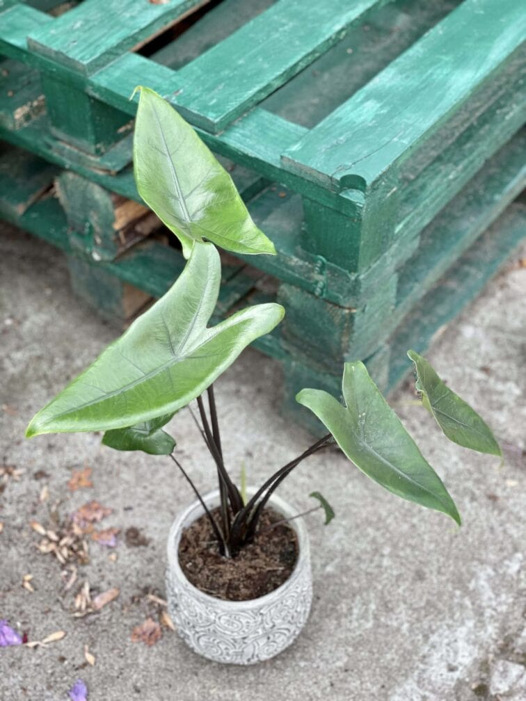 Co zrobić po zakupie?: Zalecamy przesadzenie alokazji do podłoża przepuszczalnego, bogatego w dodatki typu perlit, kora sosnowa, chipsy kokosowe, wermikulit. Nie toleruje zastoin wody. Produkcyjne podłoże, którego zadaniem jest długie utrzymywanie wilgoci nie nadaje się na dłuższą metę do uprawy tych tropikalnych piękności.