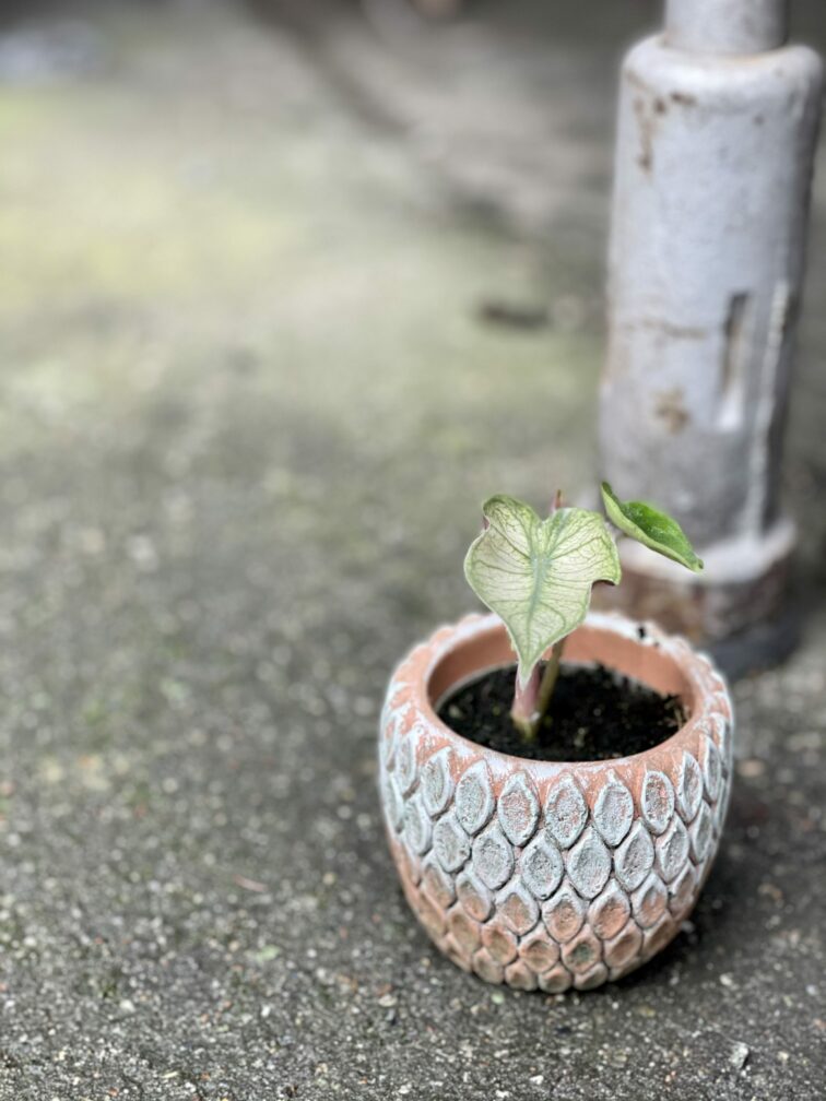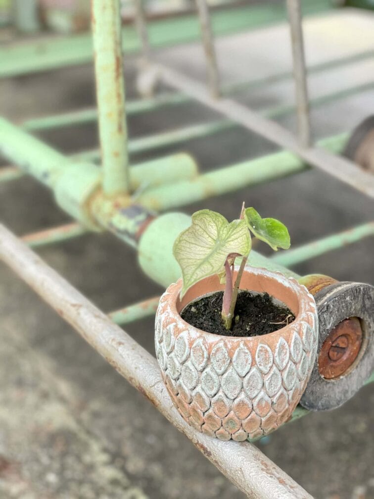 Co zrobić po zakupie?: Zalecamy przesadzenie do specjalistycznego podłoża dedykowanego alokazjom lub do samodzielnie stworzonej przepuszczalnej mieszanki z dodatkiem np. chipsów kokosowych, keramzytu.