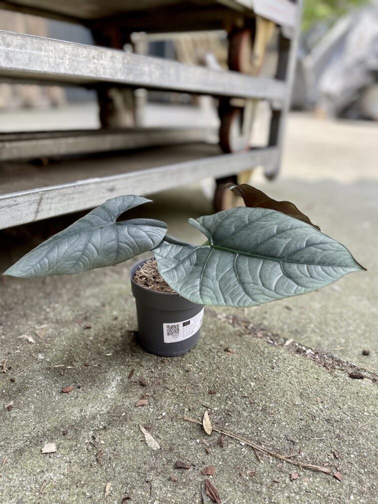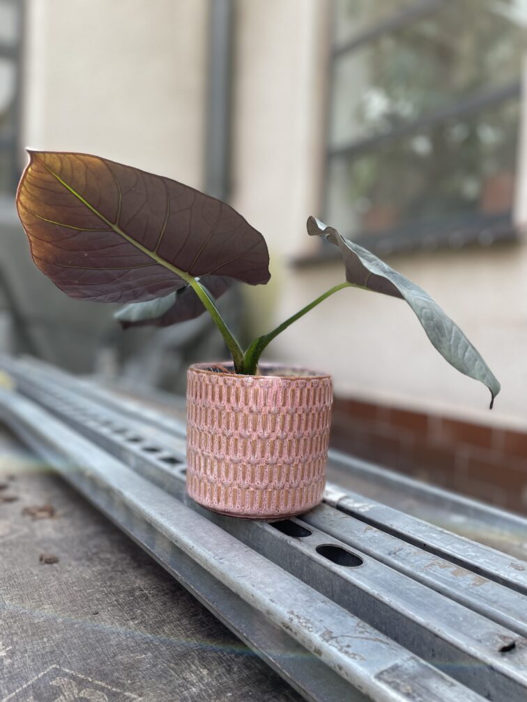 Alocasia Platinum to kolejna odmiana alokazji należąca do tych trudniej dostępnych i kolekcjonerskich. Jej liście mają trudny do opisania kolor – jest w nich coś srebrzystego, ale wyraźnie przebija się również seledynowa zieleń. Te piękne liście odbijają światło, co tworzy jeszcze bardziej niezwykły efekt. Jeśli radzisz sobie z innymi alokazjami – Alocasia Platinum też nie powinna sprawić Ci kłopotów i warto ją mieć w swojej kolekcji!