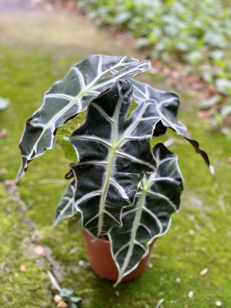 Lśniące, strzałkowate liście z kontrastowym, mocno zarysowanym unerwieniem sprawiają, że trudno oprzeć się jej czarowi. Jak wszystkie Alocasie jest dość wymagająca, ale z pewnością warta zachodu.