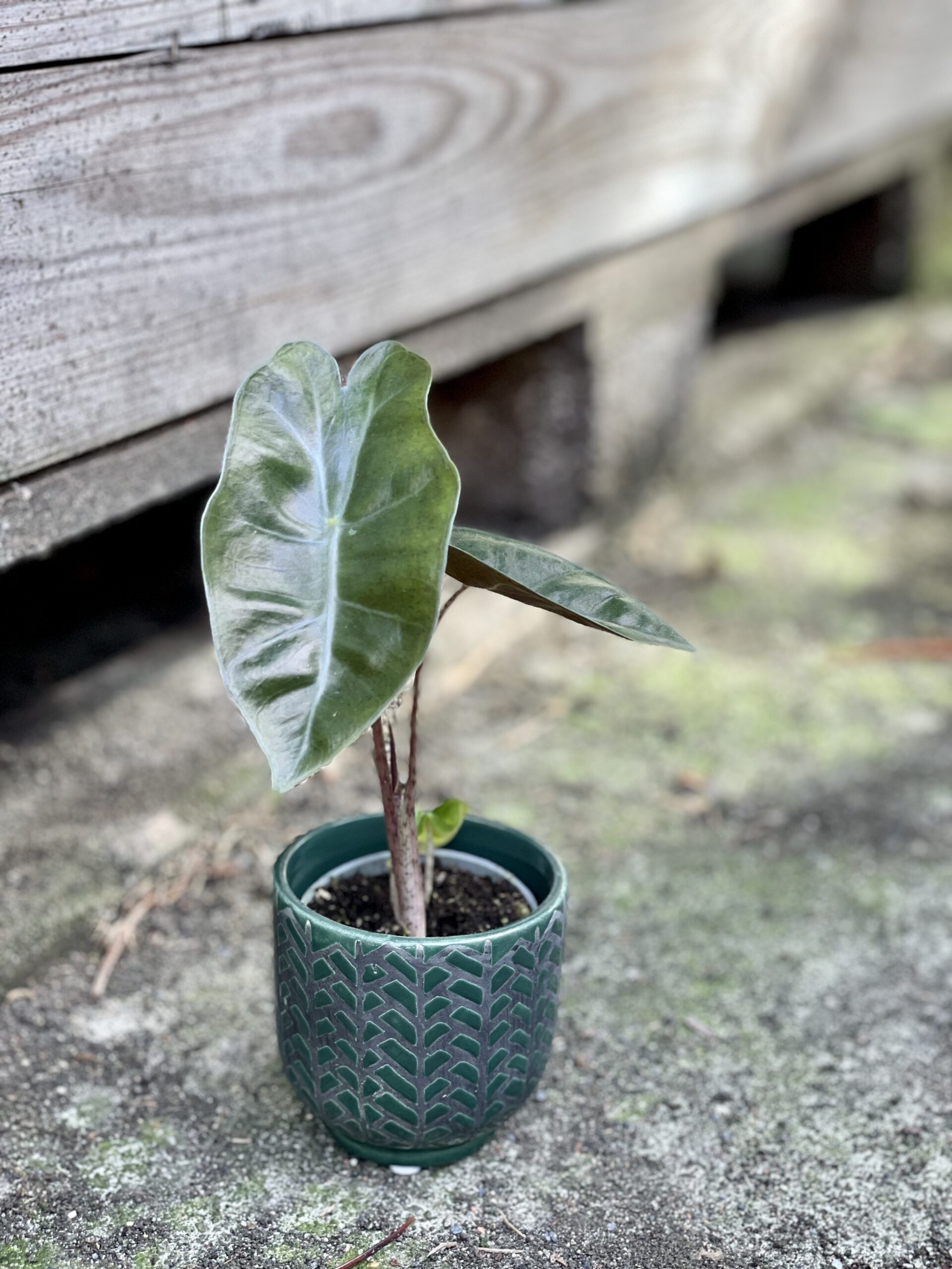 Alocasia Pseudo Sanderiana to jedna z rzadszych przedstawicielek gatunku Alokazja z rodziny obrazkowatych. Liście tej odmiany mają kolor głębokiej zieleni, skontrastowany ze srebrzystym unerwieniem. Koniecznie zwróćcie również uwagę na pofalowane marginesy. Dorosłe okazy zyskują wyraźne wcięcie na górze, co czyni tę alokazję idealną propozycję dla fanów wydłużonych i uszatych liści! Jak wszystkie alokazje – wymaga trochę uwagi, ale spokojnie można ją okiełznać.