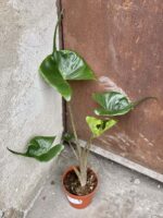 Widoczna na zdjęciu roślina: Alocasia Stingray ma wysokość około 40 cm. Jej doniczka ma 12 cm średnicy oraz 12 cm wysokości.