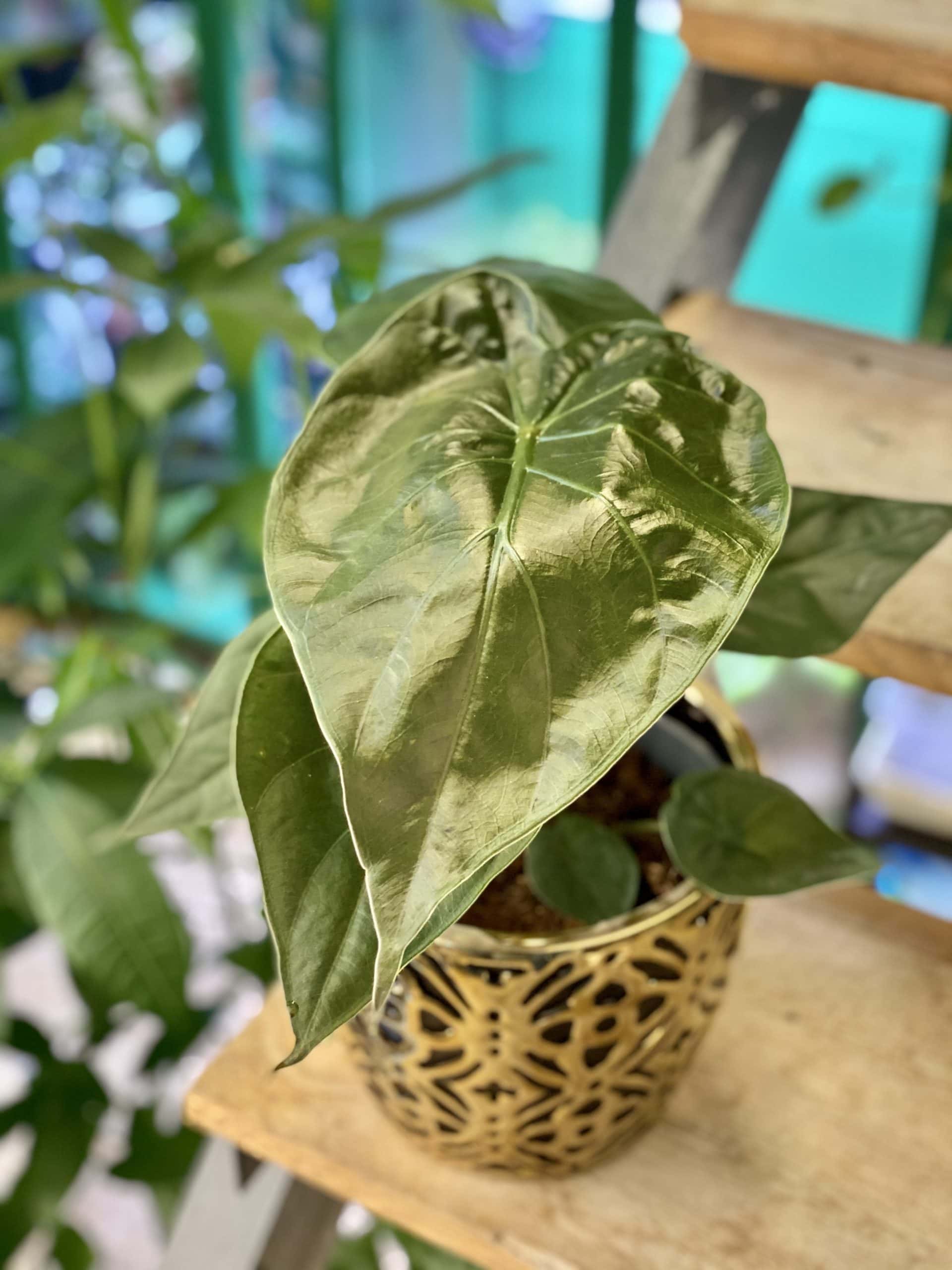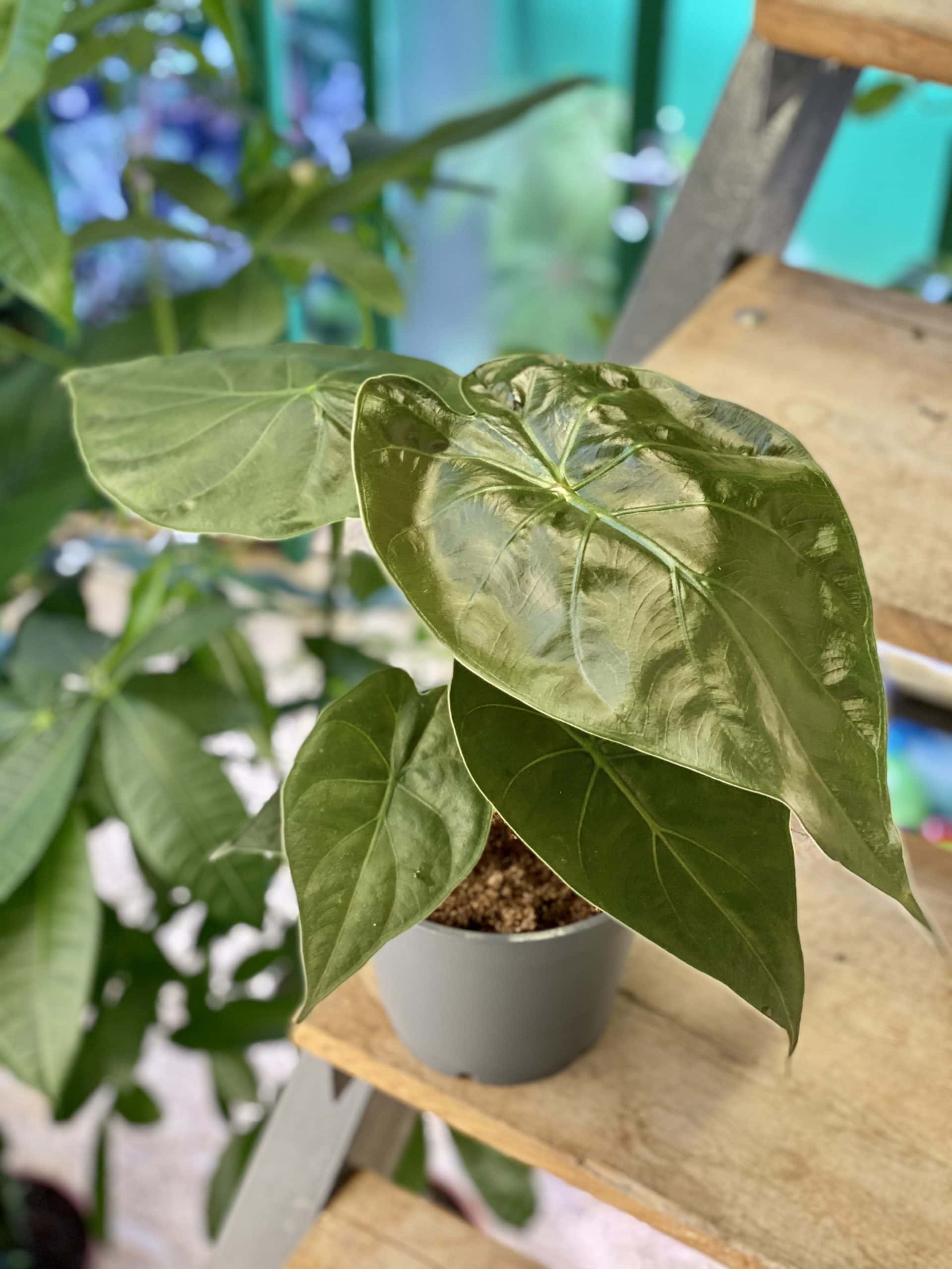 Pochodzenie: Krzyżówka alokazji wonnej i alokazji gageana, pochodzących z lasów tropikalnych Nowej Gwinei.