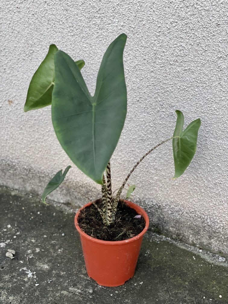 Ta wyjątkowa odmiana Alocasii swą nazwę zawdzięcza oryginalnie wybarwionym łodygom przypominającym pasy zebry.