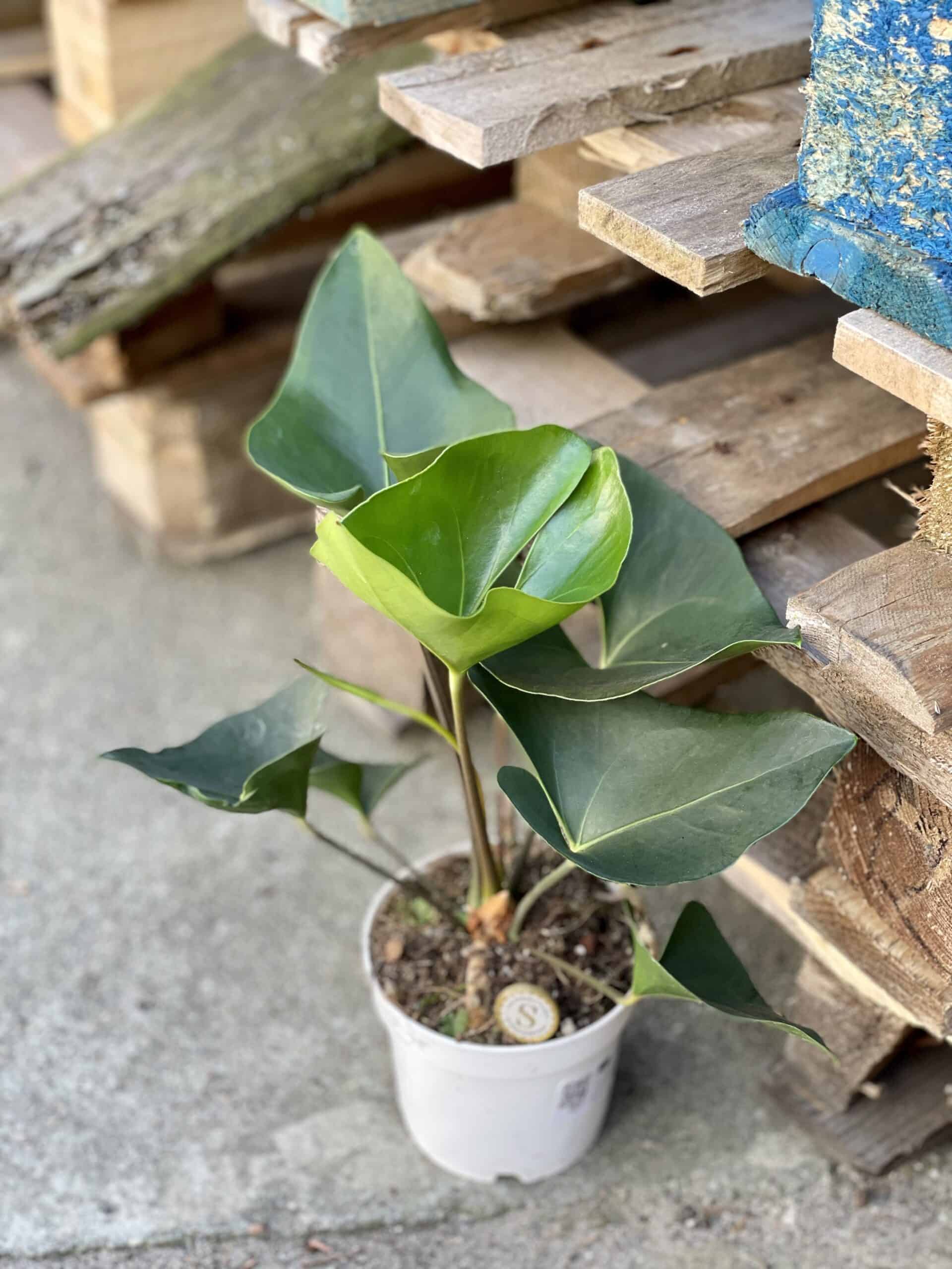 Anthurium Arrow to dość rzadko spotykana w handlu odmiana anturium. Wyróżniają ją duże, soczyście zielone liście w kształcie strzał. To roślina doniczkowa, którą kupujemy zdecydowanie ze względu na liście, a nie kwiaty, ale świetnie skomponuje się z innymi, również kwitnącymi, kultywarami!