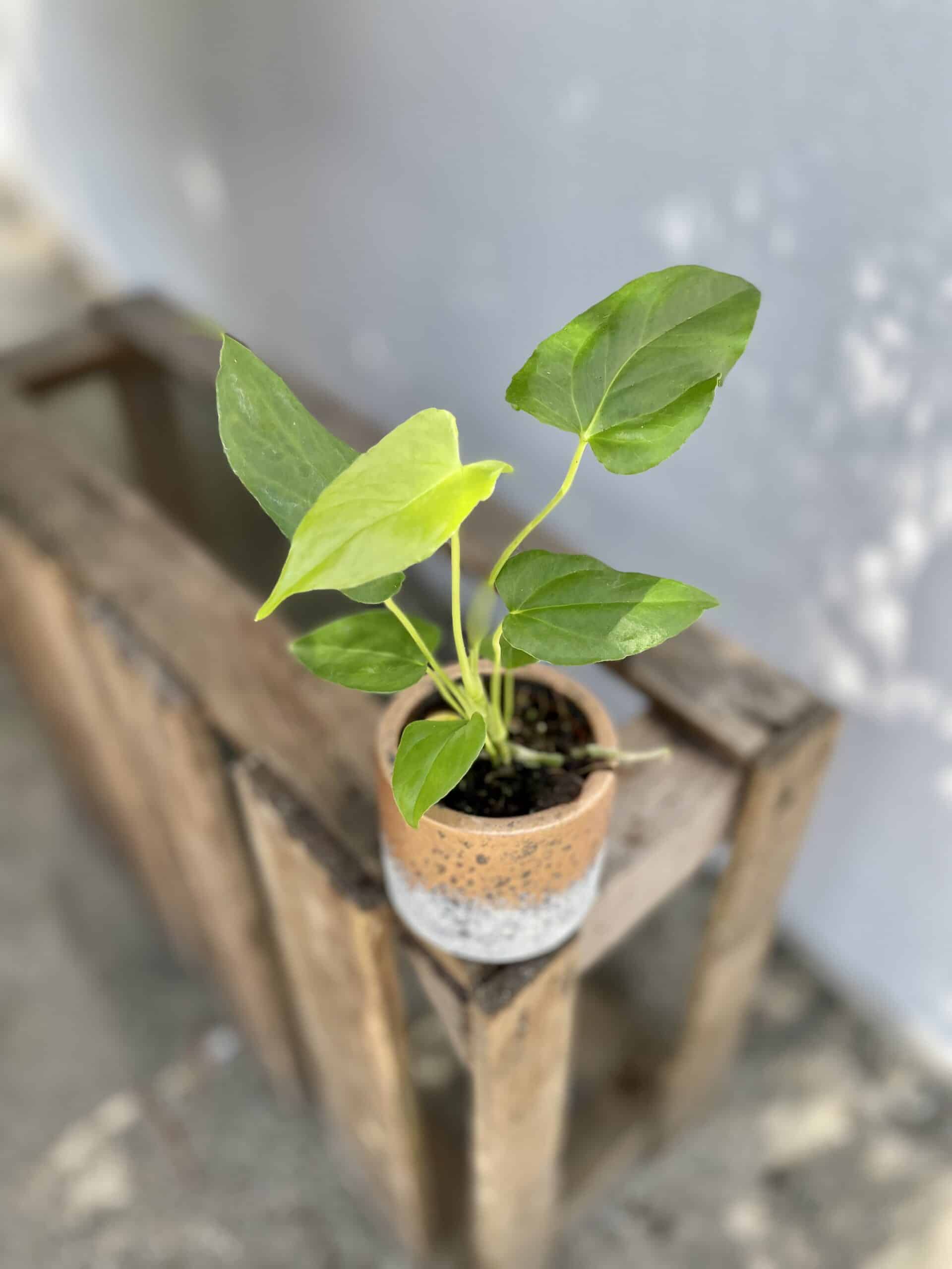 Rzadko dostępna odmiana Anthurium, której liście z wiekiem zyskują wydłużony, sercowaty kształt i charakterystyczne “uszy”. Ten okaz jest prosty w pielęgnacji i z powodzeniem może wzbogacić kolekcję początkujących z zielenią.