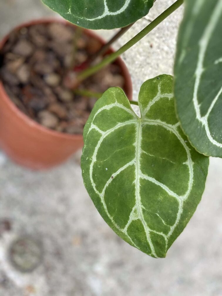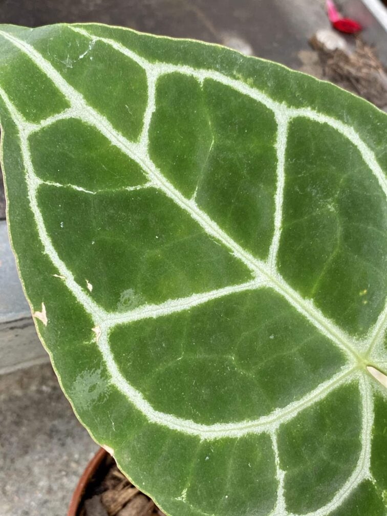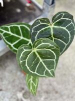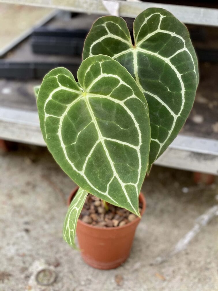 Anthurium crystallinum to przepiękna odmiana anturium, o docelowo bardzo dekoracyjnych, welwetowych liściach z posrebrzanym unerwieniem. Kolor liści jest nieco jaśniejszy niż u Anthurium clarinervium, ale to sprawia, że te odmiany wyglądają pięknie zestawione razem.