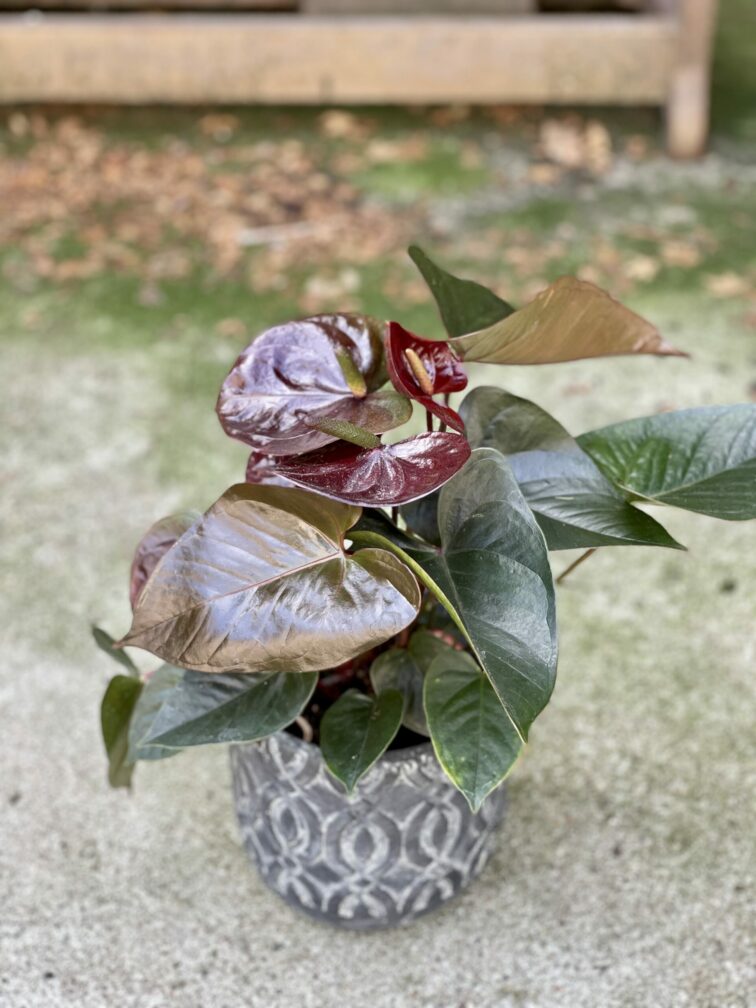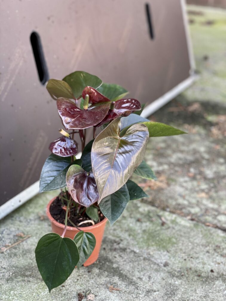 Oryginalna, rzadka i nieco mroczna odmiana Anthurium o intensywnie ciemnych kwiatach.