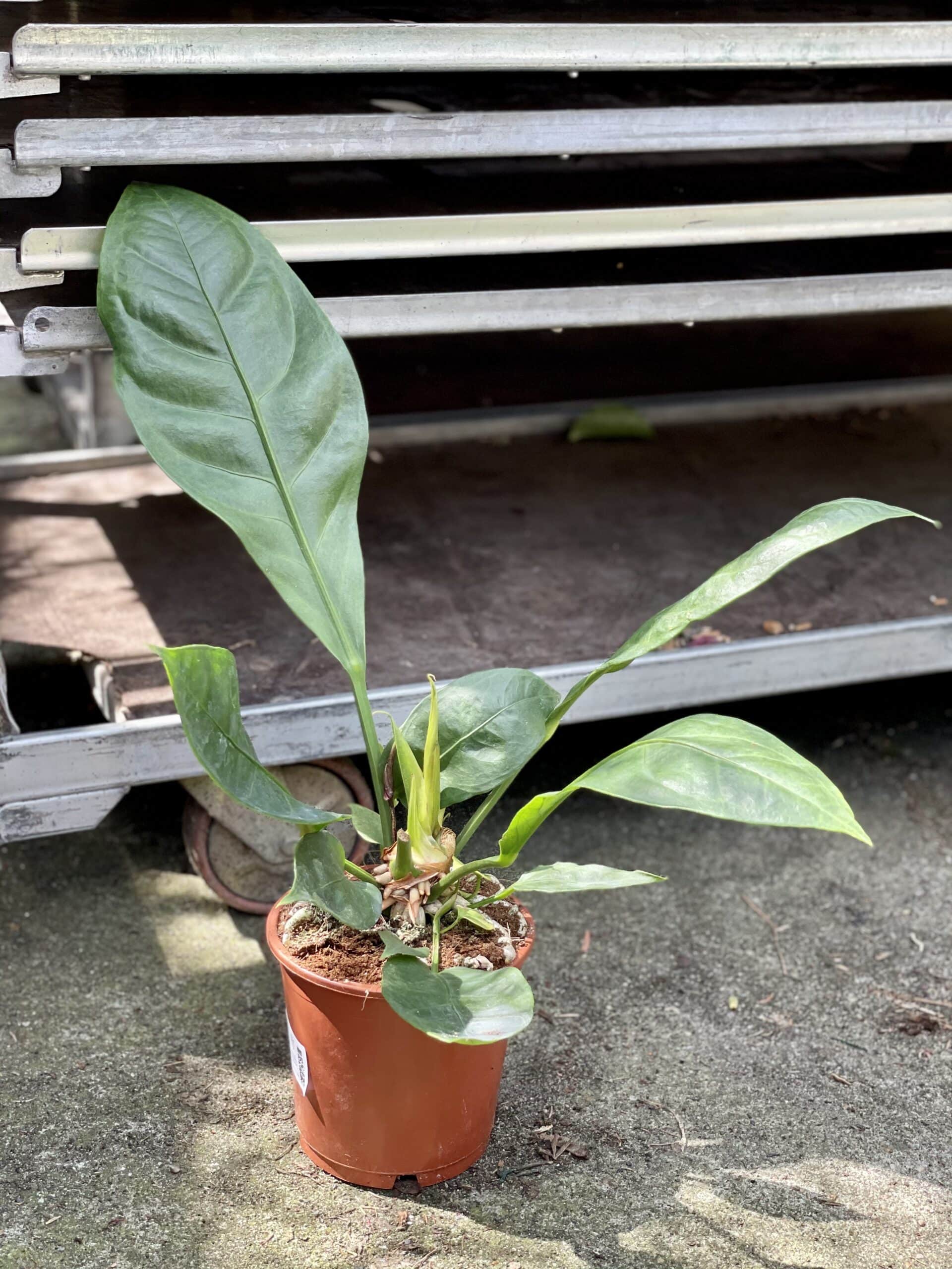 Rzadka i elektryzująco piękna odmiana Anthurium o wielkich, błyszczących liściach z wyraziście zaznaczonym unerwieniem.