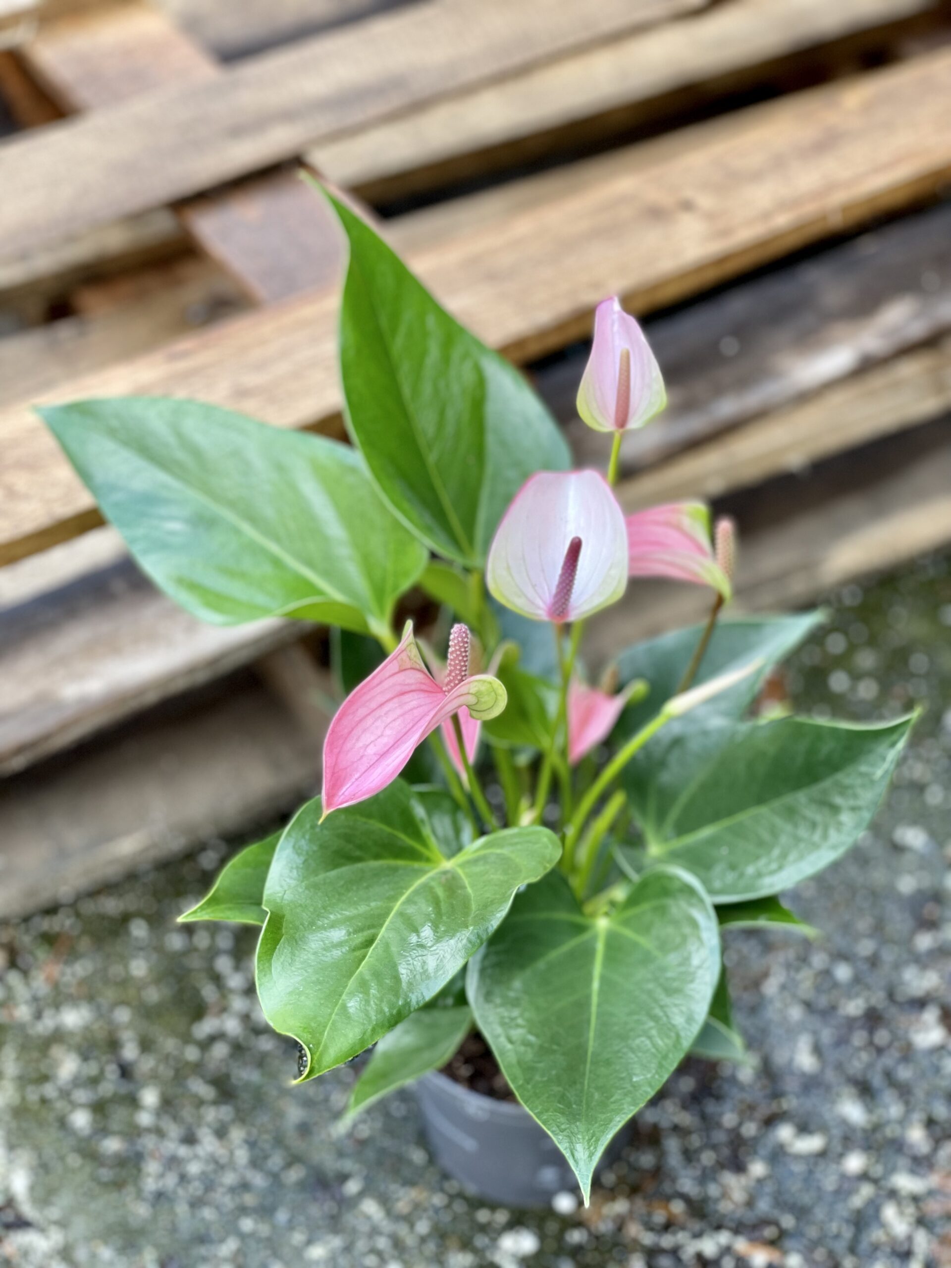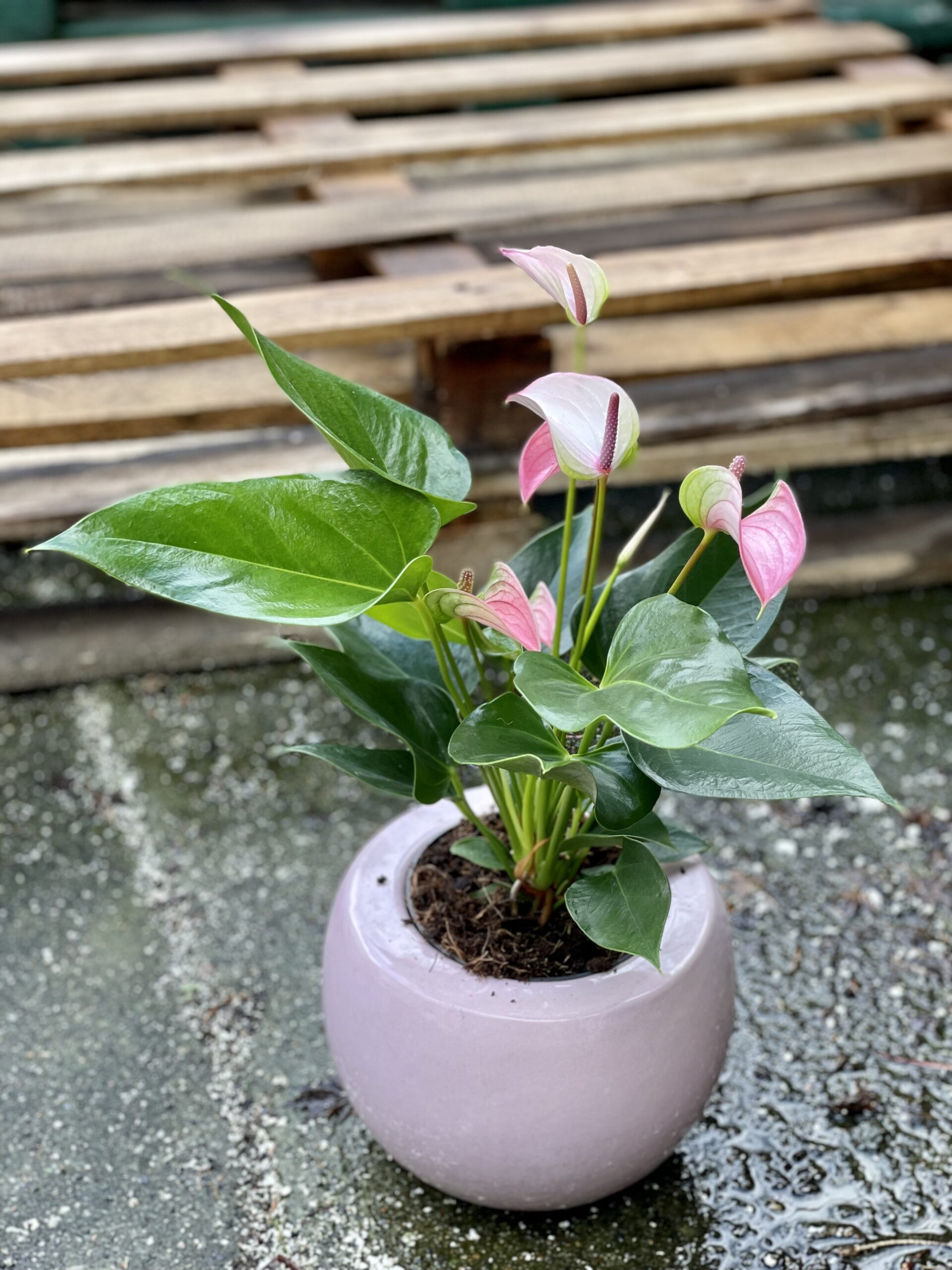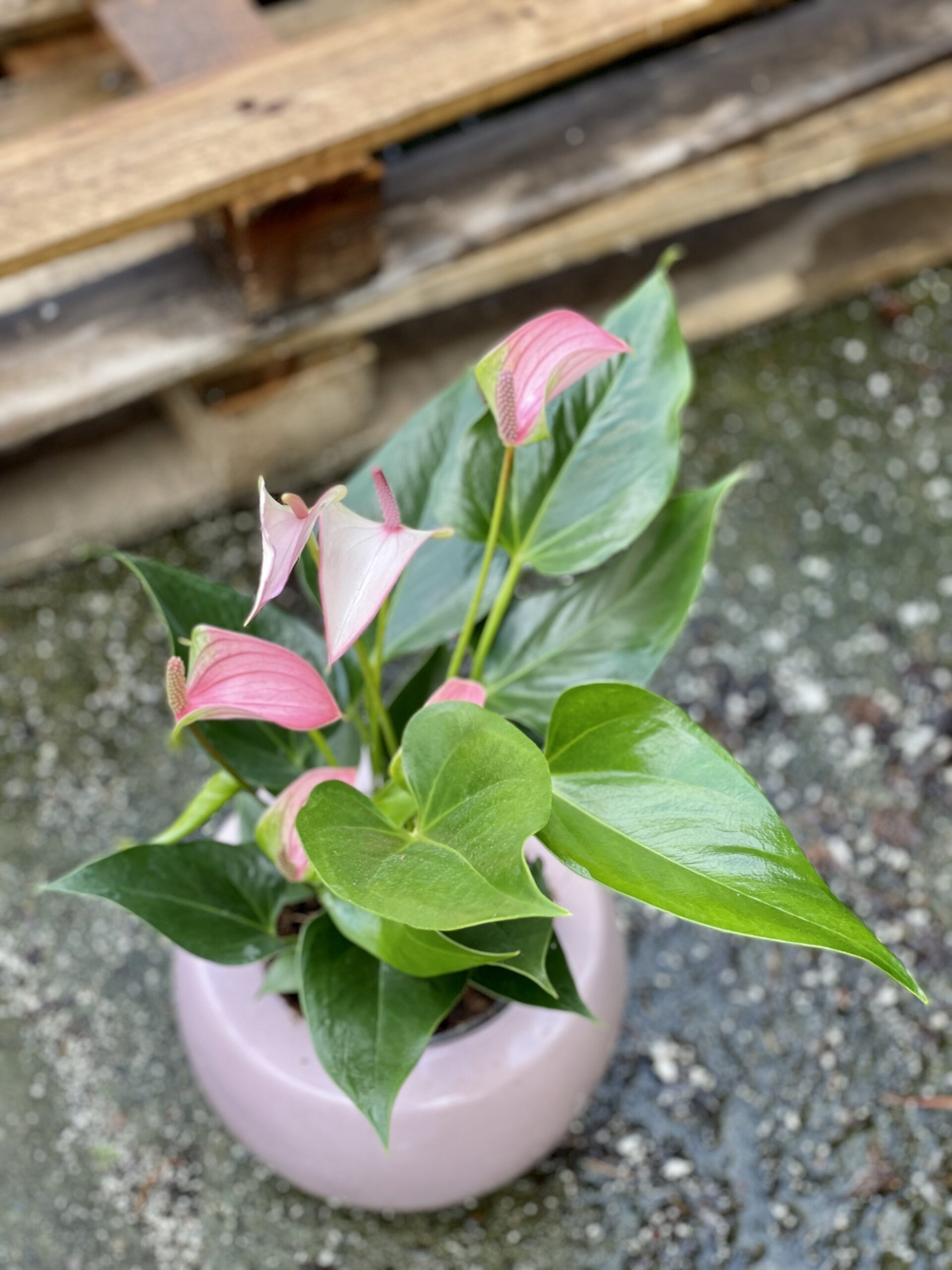 Anthurium Joli Pulse to anturium o pastelowych, różowych kwiatach i sercowatych, błyszczących liściach. Propozycja idealna na prezent, jak i do wprowadzenia trochę wiosennego nastroju do wnętrza. To niezbyt kłopotliwa w uprawie roślina doniczkowa, lubująca się w przepuszczalnym podłożu i dość skąpym podlewaniu.