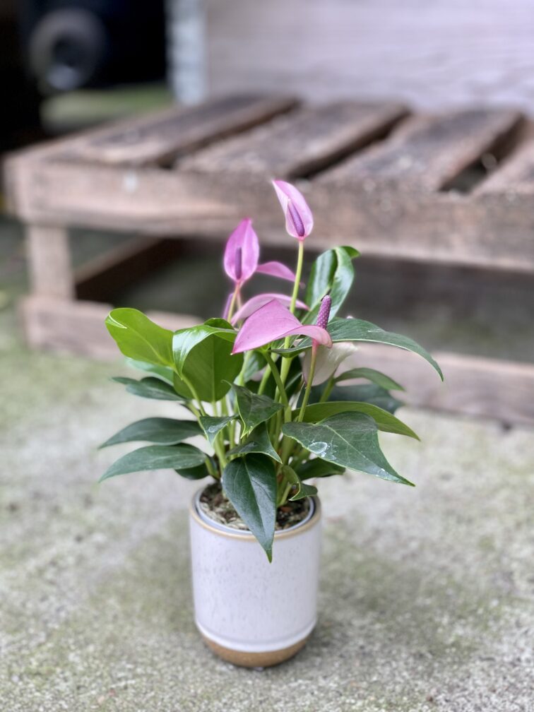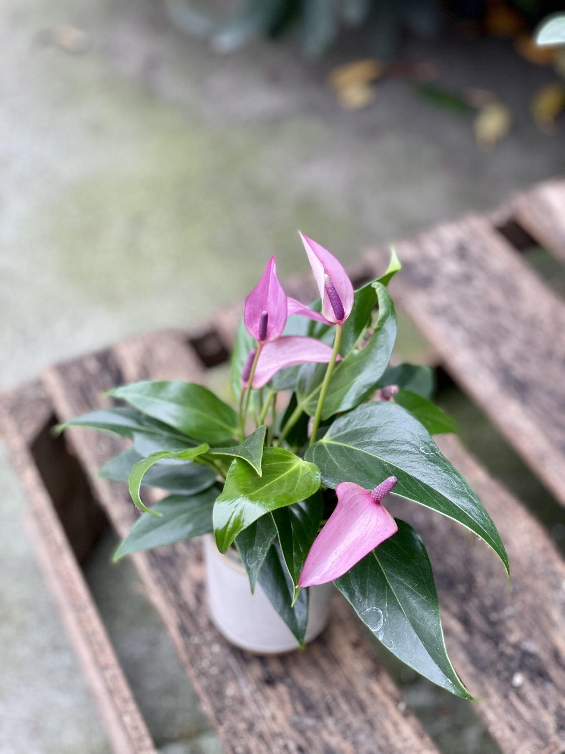 Urokliwa odmiana Anthurium o pięknych, różowych płatkach. W Ameryce Południowej, skąd pochodzi, wykorzystywana chętnie jako element wiązanek ślubnych. Na uwagę zasługują też jego lśniące, lancetowate liście w kolorze głębokiej zieleni.