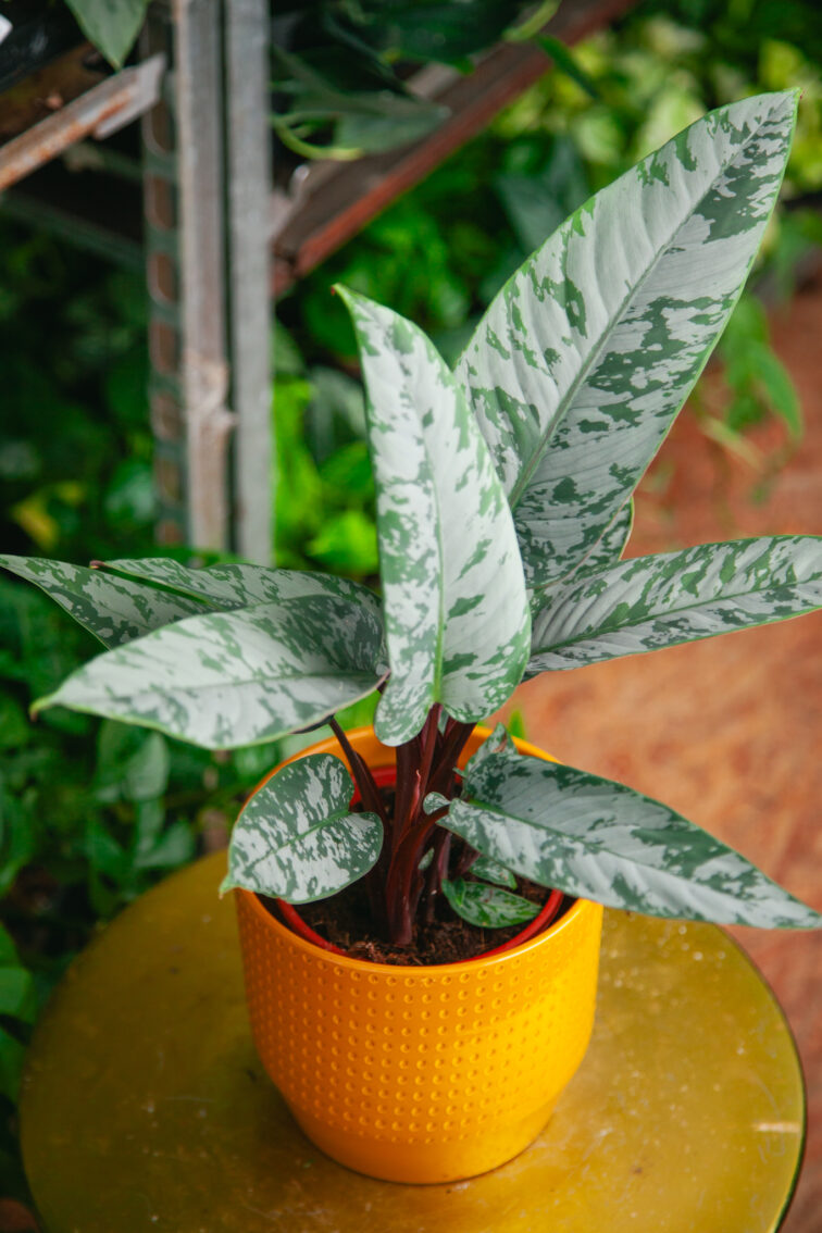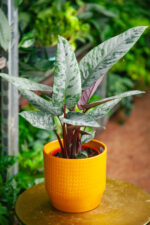 Długie, lancetowate i ostro zakończone liście zachwycają pstrokatą mozaiką srebrzystych i oliwkowych zieleni. Dodatkowy akcent kolorystyczny wprowadzają bordowe pędy i spody liści. Roślina w uprawie jest podobna do filodendronów i homalomen. Przesadzona w luźne, oddychające podłoże i podlewana z umiarem, będzie piękną i dość wdzięczną w uprawie domowniczką.