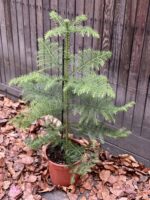 Widoczna na zdjęciu roślina: Araucaria ma wysokość około 90 cm. Jej doniczka ma 21 cm średnicy oraz 18 cm wysokości.