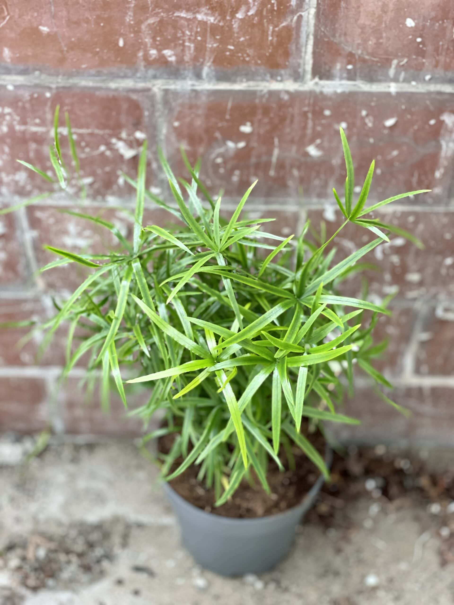 Widoczna na zdjęciu roślina: Asparagus falcatus ma wysokość około 45 cm. Jej doniczka ma 17 cm średnicy oraz 15 cm wysokości.