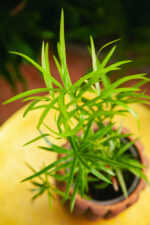 Na co trzeba uważać?: Pilnujemy aby rośliny nie przesuszyć. Asparagus jest raczej rośliną odporną na szkodniki i choroby. Jednak latem możemy przeglądać go pod kątem obecności wciornastków.