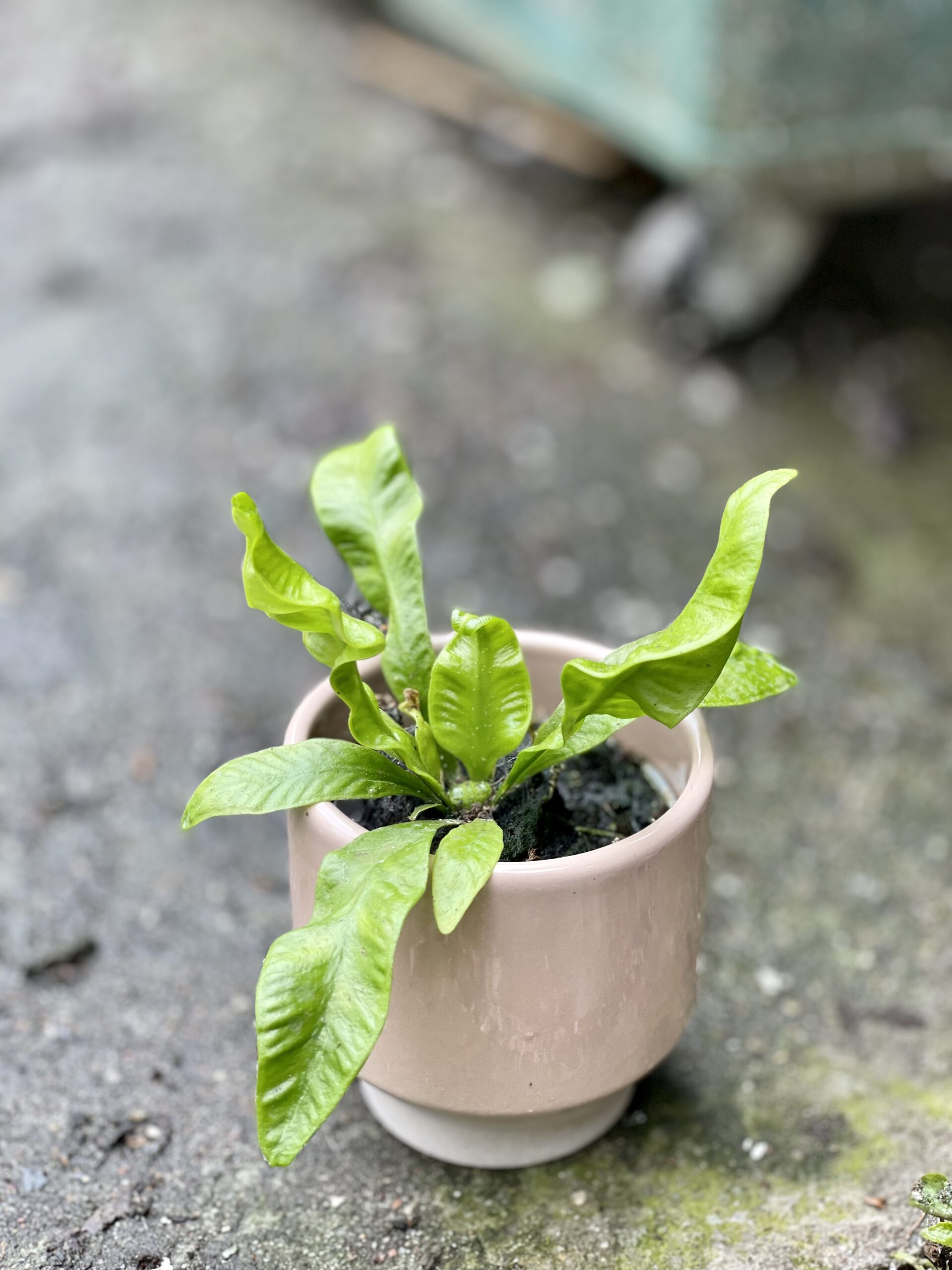Widoczna na zdjęciu roślina: Asplenium Crispy Wave ma wysokość około 15 cm. Jej doniczka ma 6 cm średnicy oraz 5 cm wysokości.
