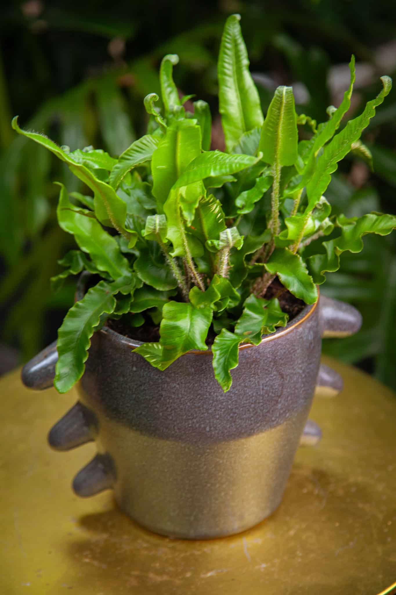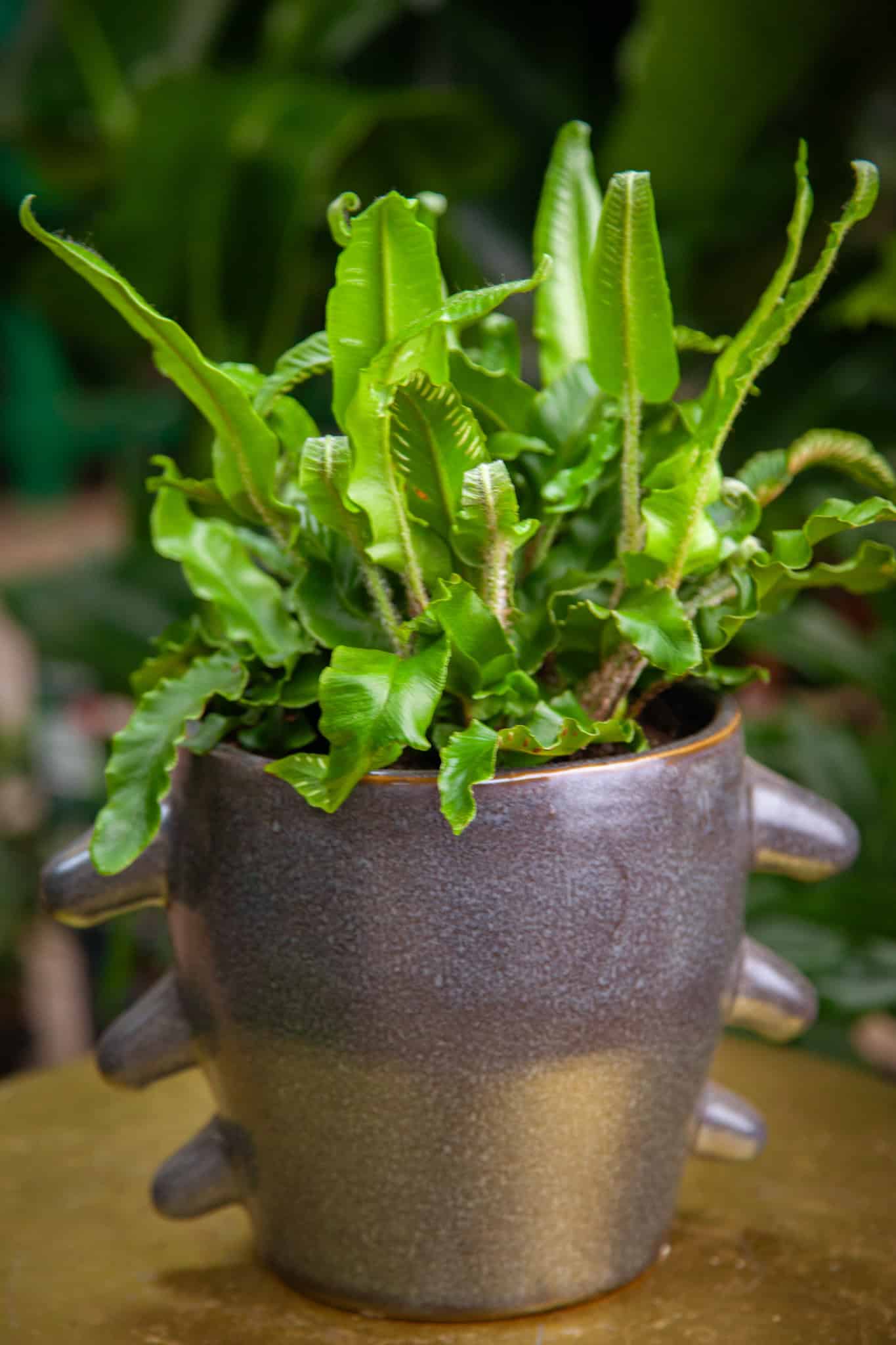 Widoczna na zdjęciu roślina: Asplenium scolopendrium ma wysokość około 15 cm. Jej doniczka ma 15 cm średnicy oraz 15 cm wysokości.