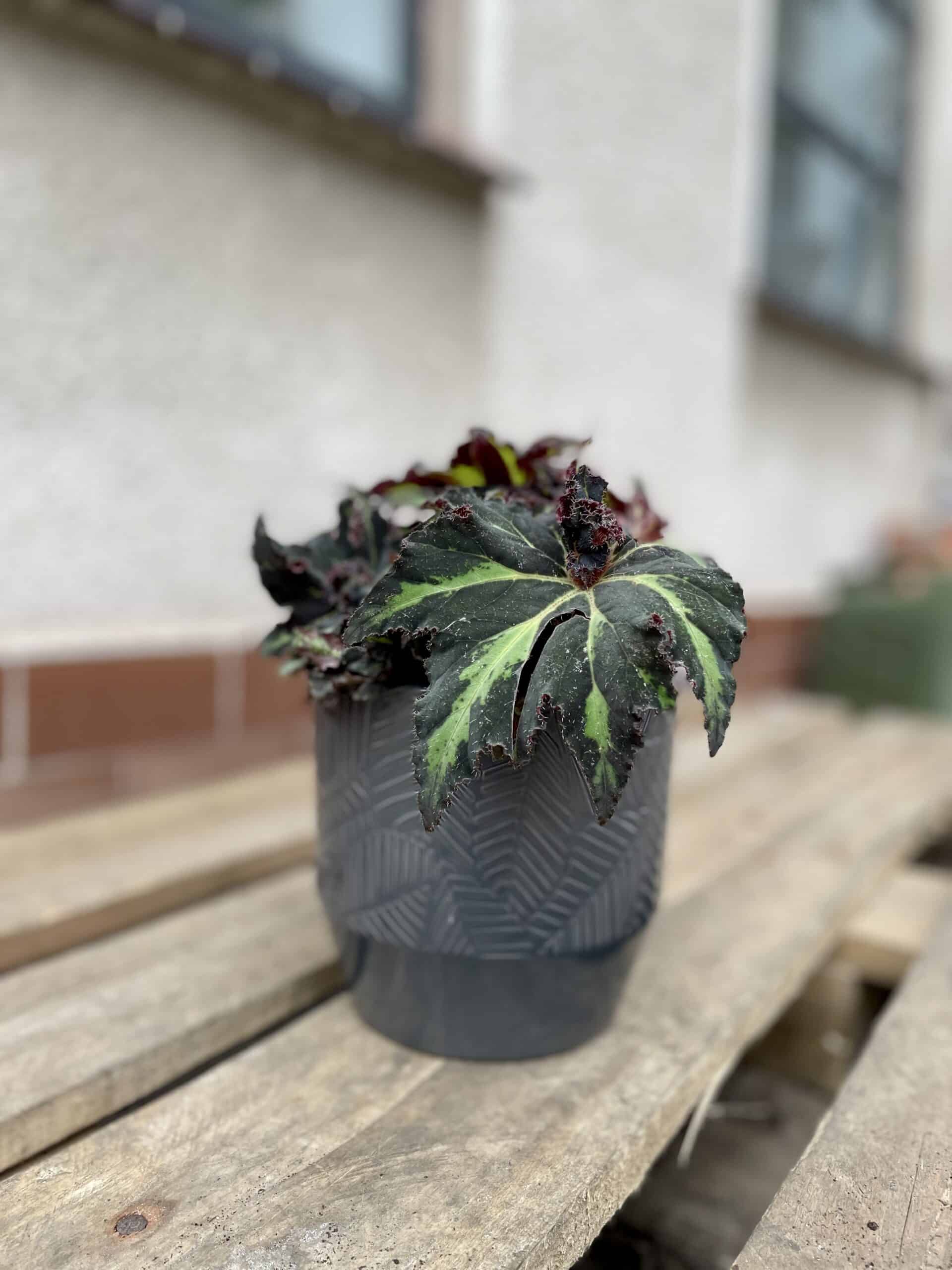 W strzępiastych liściach tej nietuzinkowej Begonii można dopatrzyć się lwiej grzywy. Ich ciemną zieleń rozjaśniają promieniście ułożone, biegnące wzdłuż głównych nerwów, przejaśnienia. Ekspresyjny pokrój rośliny i wspaniale dopełniające się na niej tonacje zieleni sprawiają, że mimo niewielkich rozmiarów, od razu przyciąga wzrok.