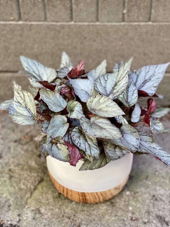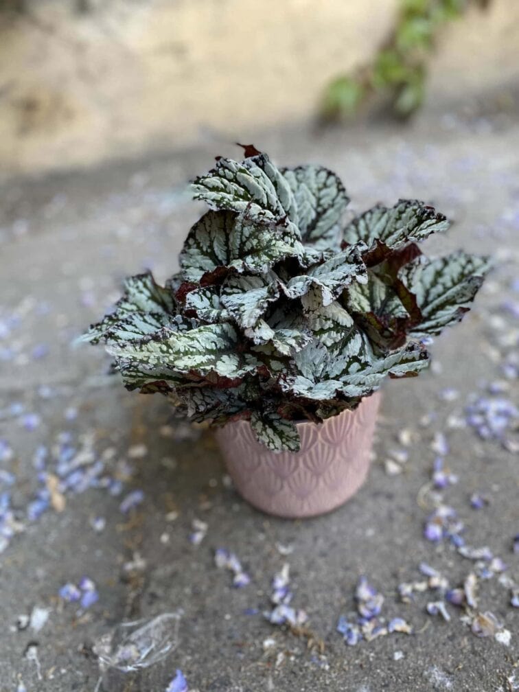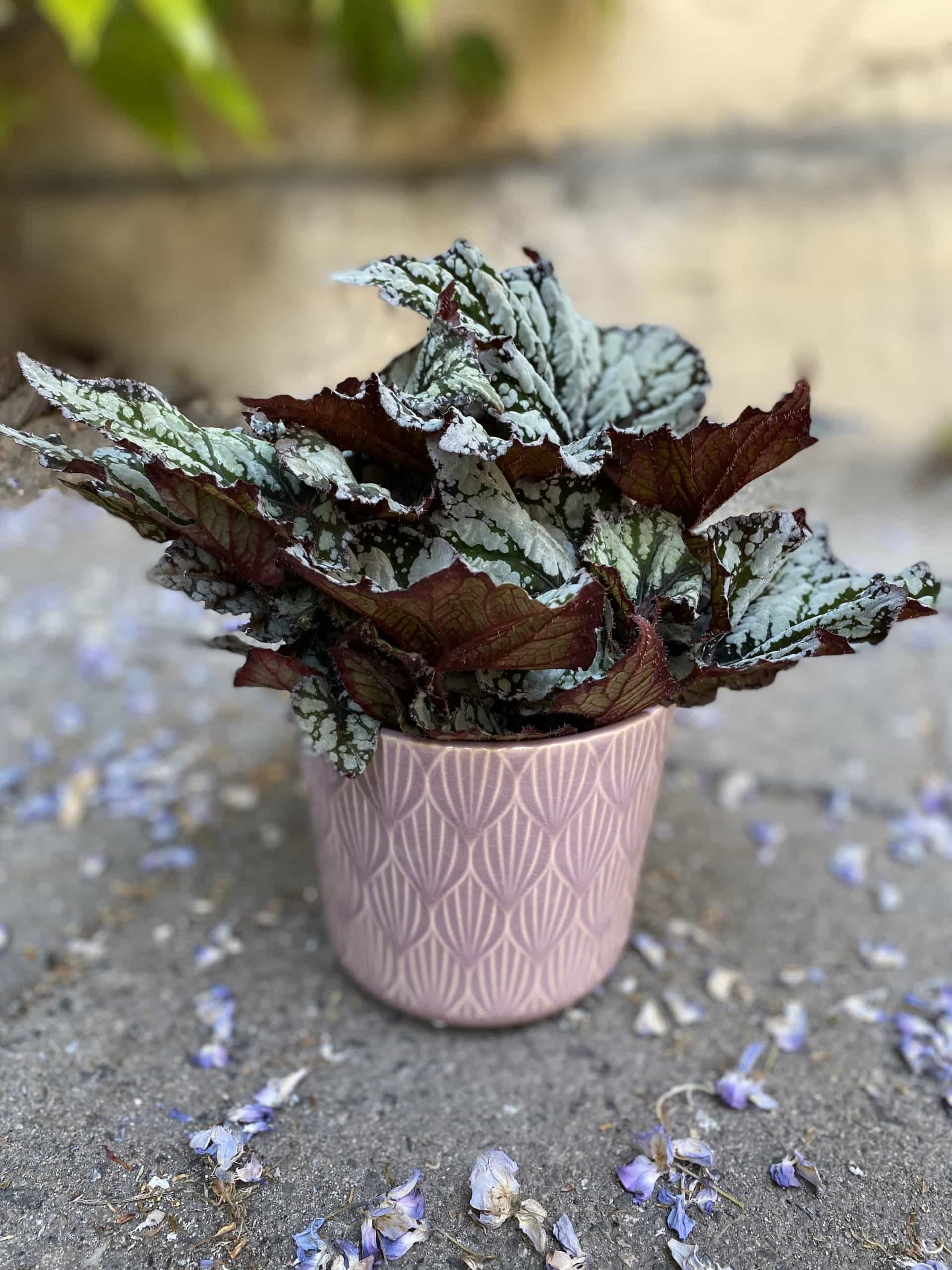 Widoczna na zdjęciu roślina: Begonia rex Kings Spirit ma wysokość około 25 cm. Jej doniczka ma 12 cm średnicy oraz 11 cm wysokości.
