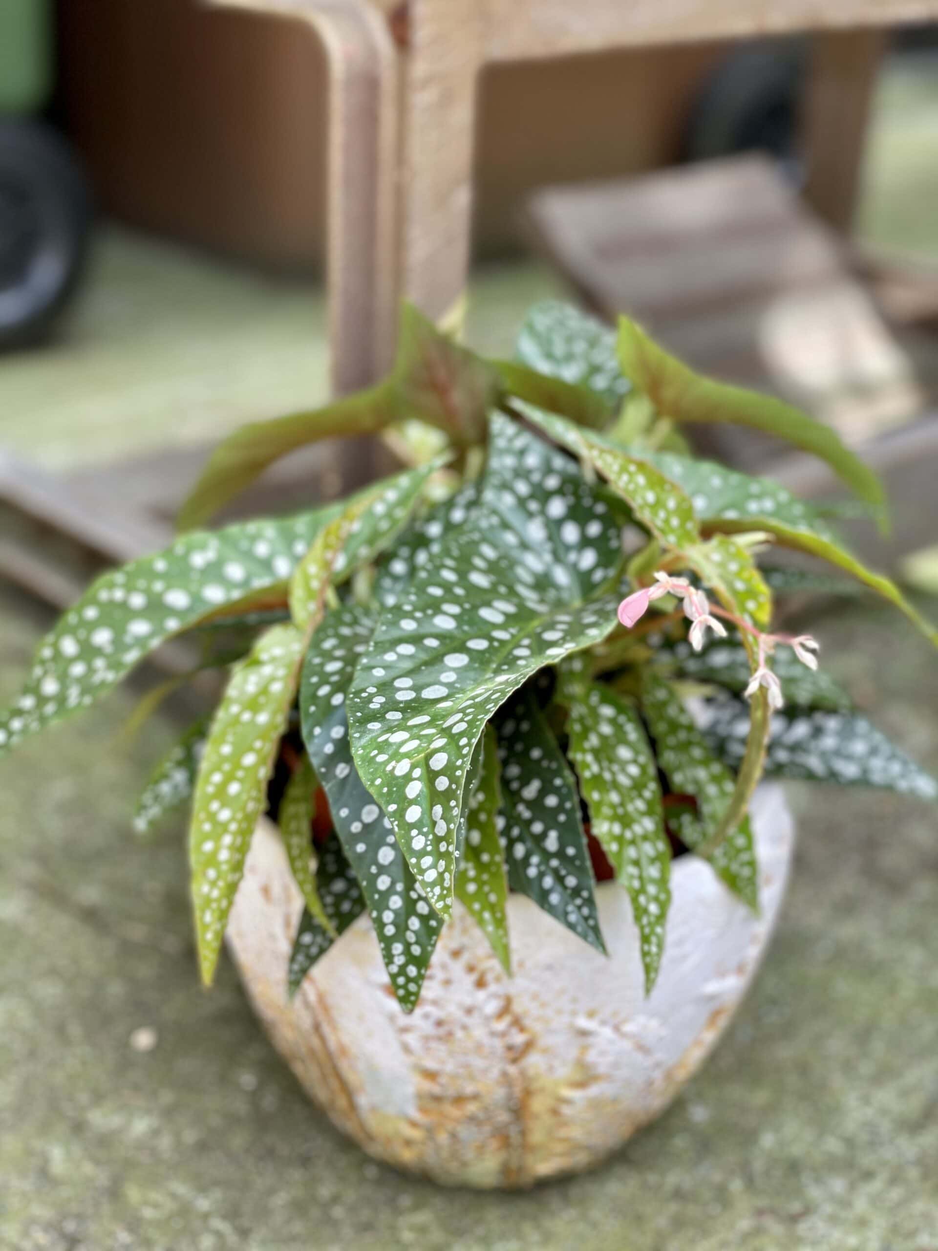 Wyjątkowo wdzięczna odmiana o drzewkowatym pokroju, liściach nakrapianych srebrzystymi plamkami i drobnych różowych kwiatuszkach. Nie bez powodu została gwiazdą Instagrama i modnych roślinnych aranżacji.