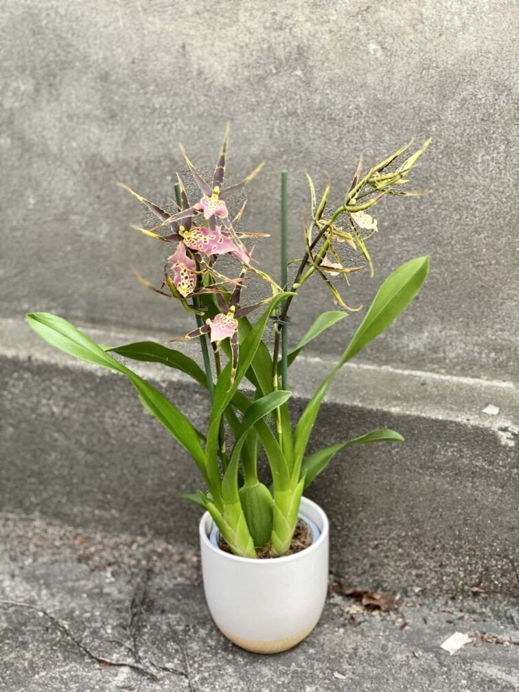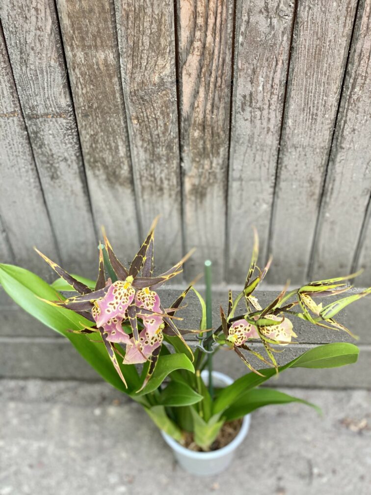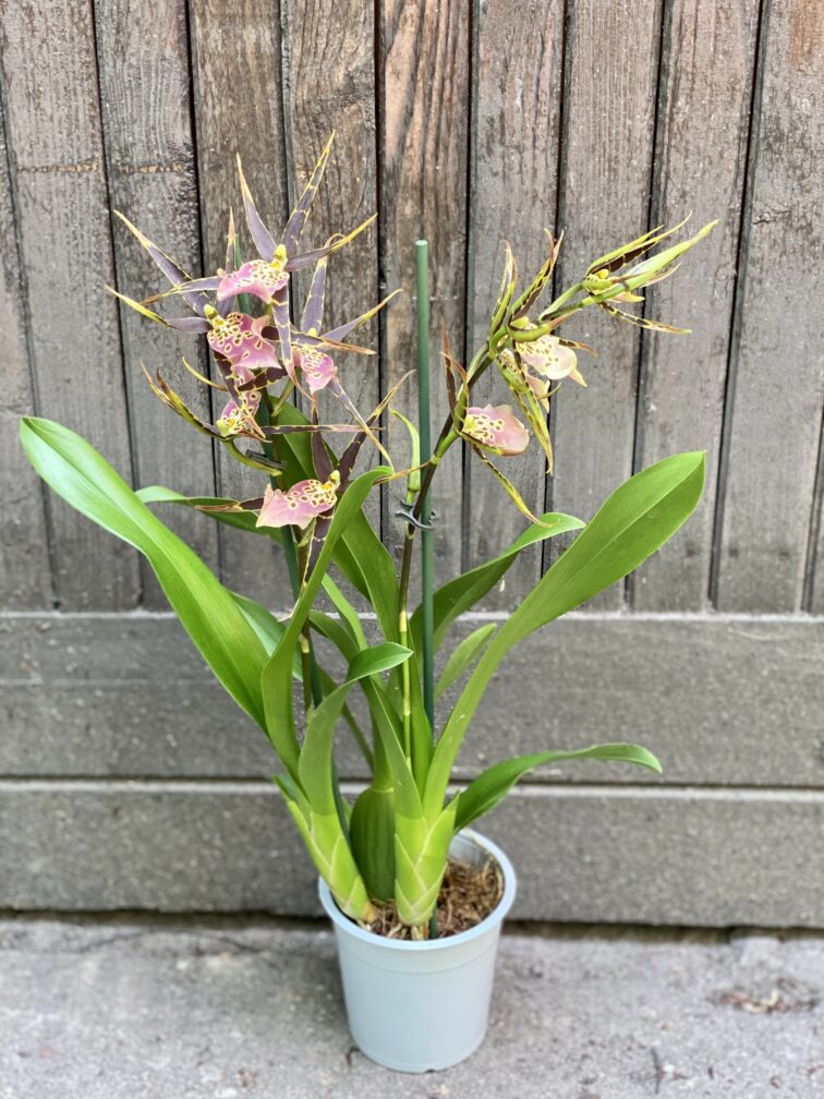 Pielęgnacja: Podlewamy, gdy podłoże przeschnie. Najlepiej czuje się w specjalnym podłożu dla storczyków lub epifitów. Zasilamy w okresie wegetacji nawozem dla roślin ozdobnych lub storczyków. Warto Brassie zraszać i bardzo uważać aby jej nie przelać. Możemy ją podlewać również metodą od dołu - poprzez zanurzenie doniczki na około 10 minut w misce z wodą (najlepiej przefiltrowaną i odstaną).