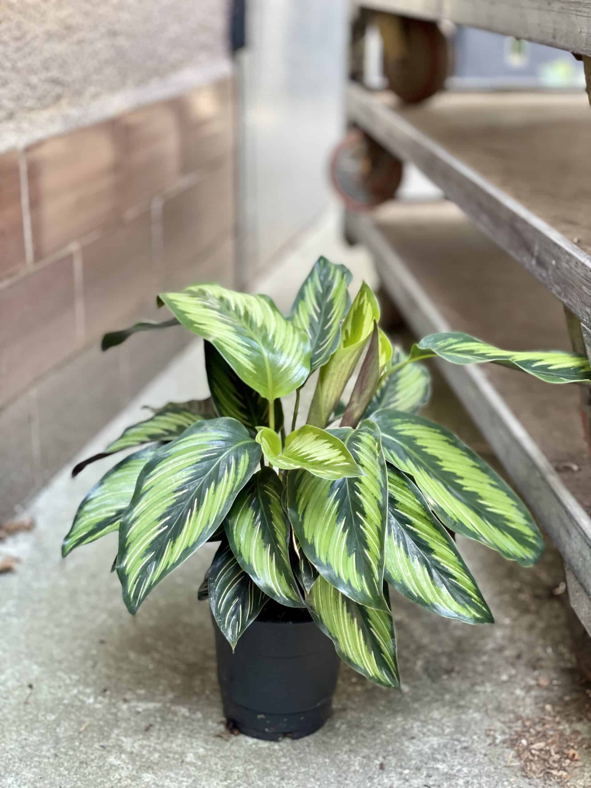 Widoczna na zdjęciu roślina: Calathea Beauty Star ma wysokość około 40 cm. Jej doniczka ma 11 cm średnicy oraz 10 cm wysokości.