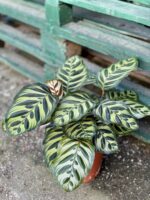 Przyciągająca wzrok dzięki wyjątkowo dekoracyjnemu ulistnieniu. Calathea, podobnie jak Marantha nazywana jest czasami rośliną modlitewną (ang. prayer plant). Zawdzięcza to niezwykłej cesze swoich liści, które leżą płasko w ciągu dnia, a na wieczór wznoszą się pionowo jak do modlitwy.