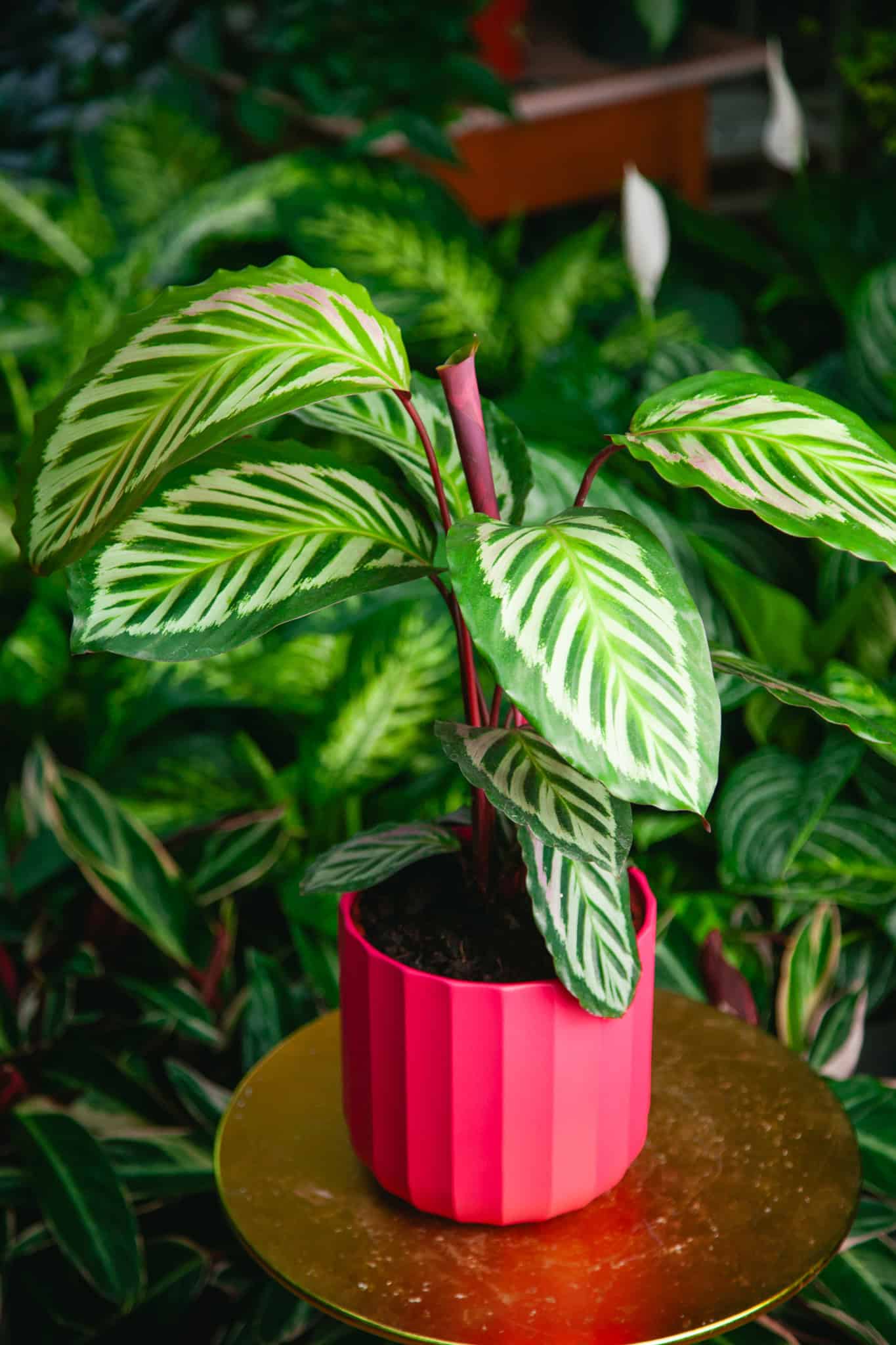 Pielęgnacja: Utrzymujemy stale wilgotne, ale nie rozmoczone podłoże. Najlepiej podlewać często małymi ilościami, (gdy podłoże niemalże przeschnie- będzie delikatnie wilgotne) za każdym razem sprawdzając wilgotność podłoża. Do nawadniania roślin z rodziny kalathei wykorzystujmy wodę miękką, odstaną, przegotowaną lub deszczową. Od wiosny do jesieni zasilamy nawozem dla roślin o ozdobnych liściach lub biohumusem. Roślinę można zraszać miękką wodą o temperaturze pokojowej.