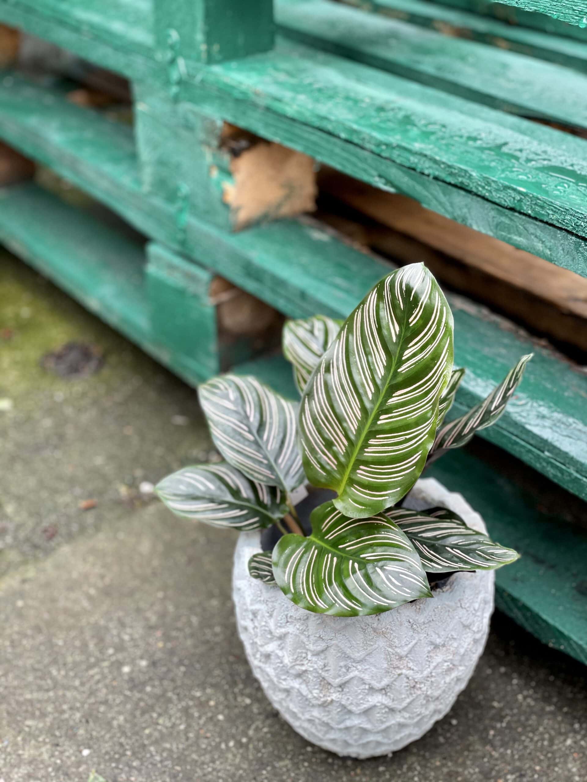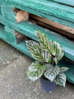Zjawiskowo piękna Calathea. Cudowne paseczki, kontrastujące z ciemną zielenią liści, wyglądają jak namalowane precyzyjnie cieniutkim pędzelkiem. Uchodzi za wymagającą, ale jeżeli tylko poeksperymentujemy by znaleźć jej najodpowiedniejsze miejsce w naszym domu i zadbamy o wilgotność gleby i powietrza, odwdzięczy się pięknym wyglądem.