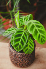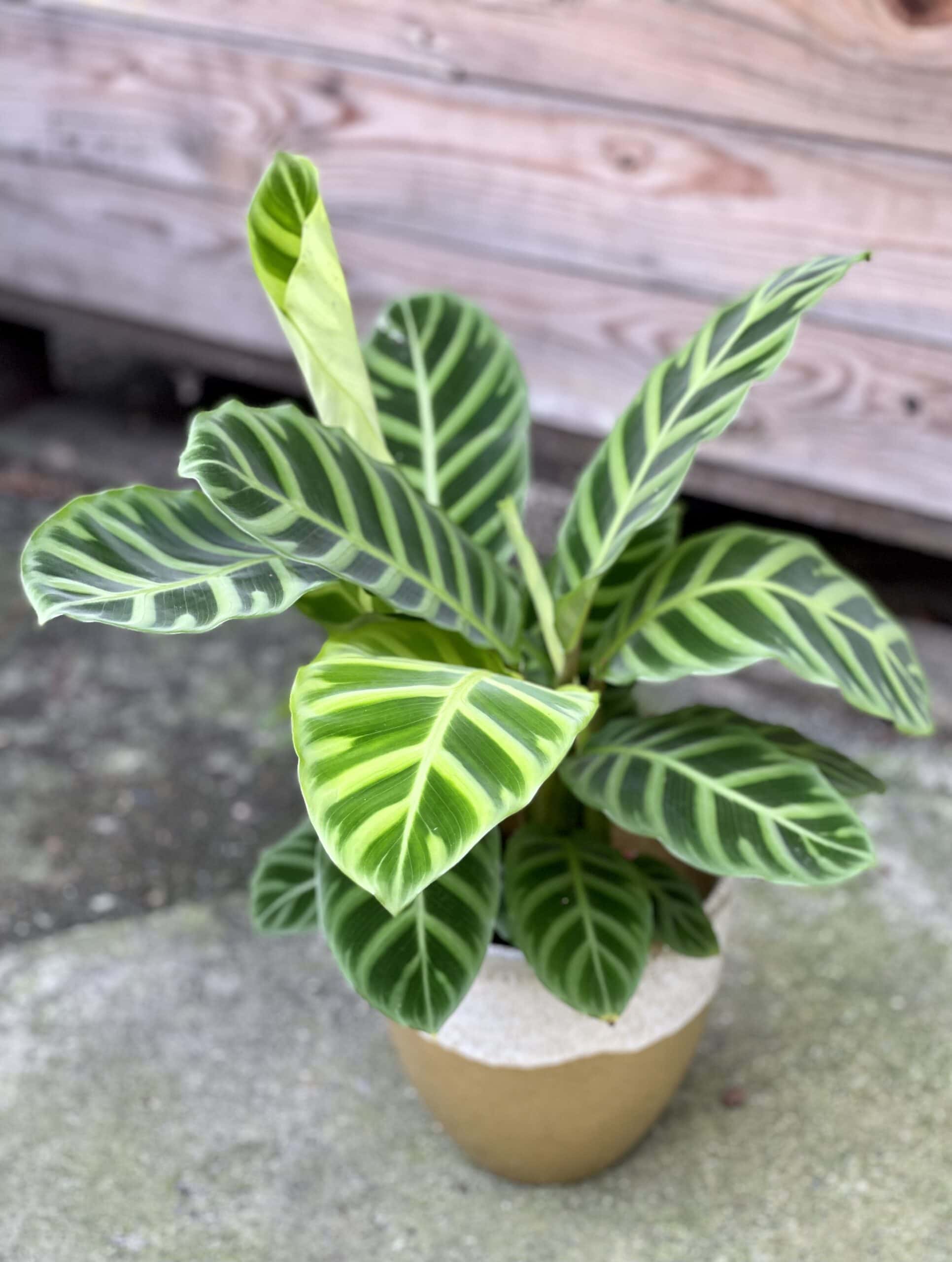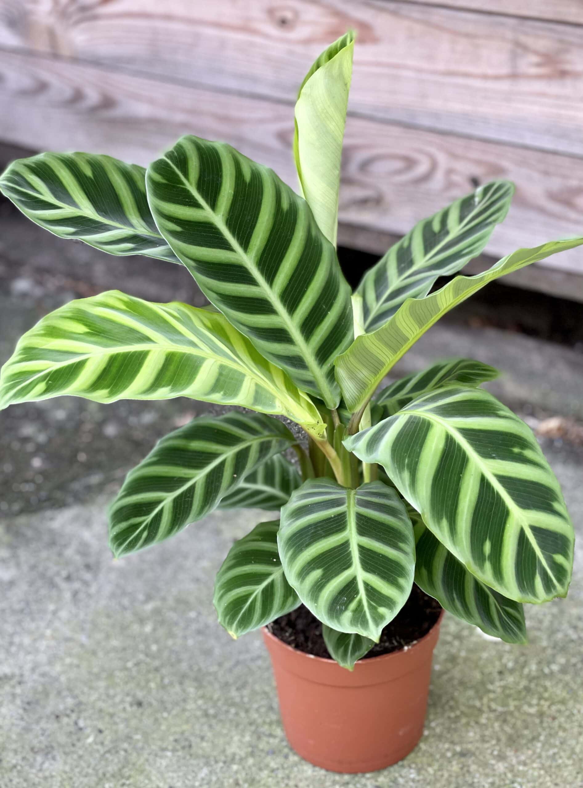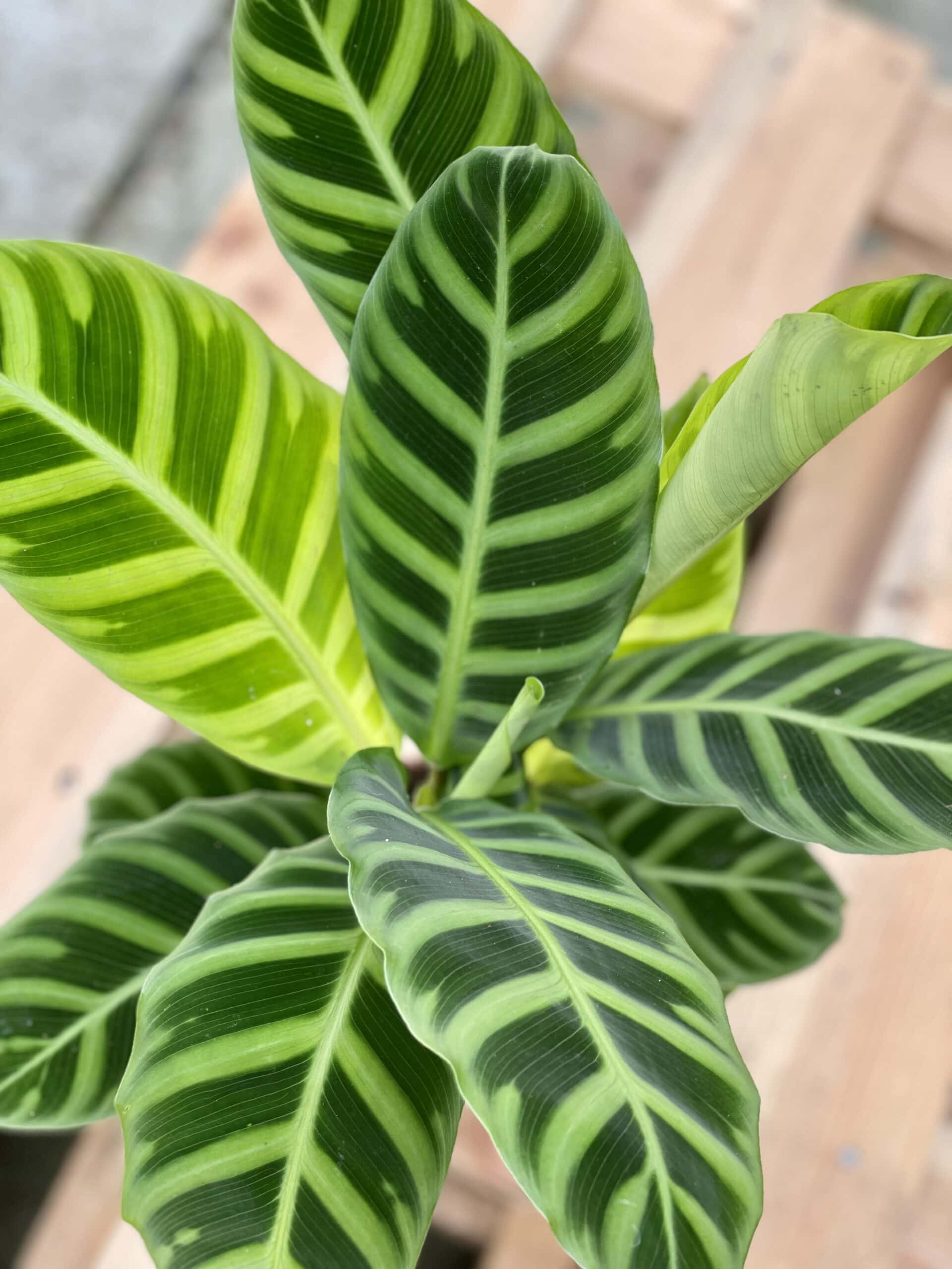 Można się kłócić czy zjawiskowe paski faktycznie przypominają skórę zebry. Ale trudno się nie zakochać w aksamitnej, delikatnej fakturze i kontrastowych odcieniach zieleni, które harmonijnie współgrają na liściach Calathei Zebriny