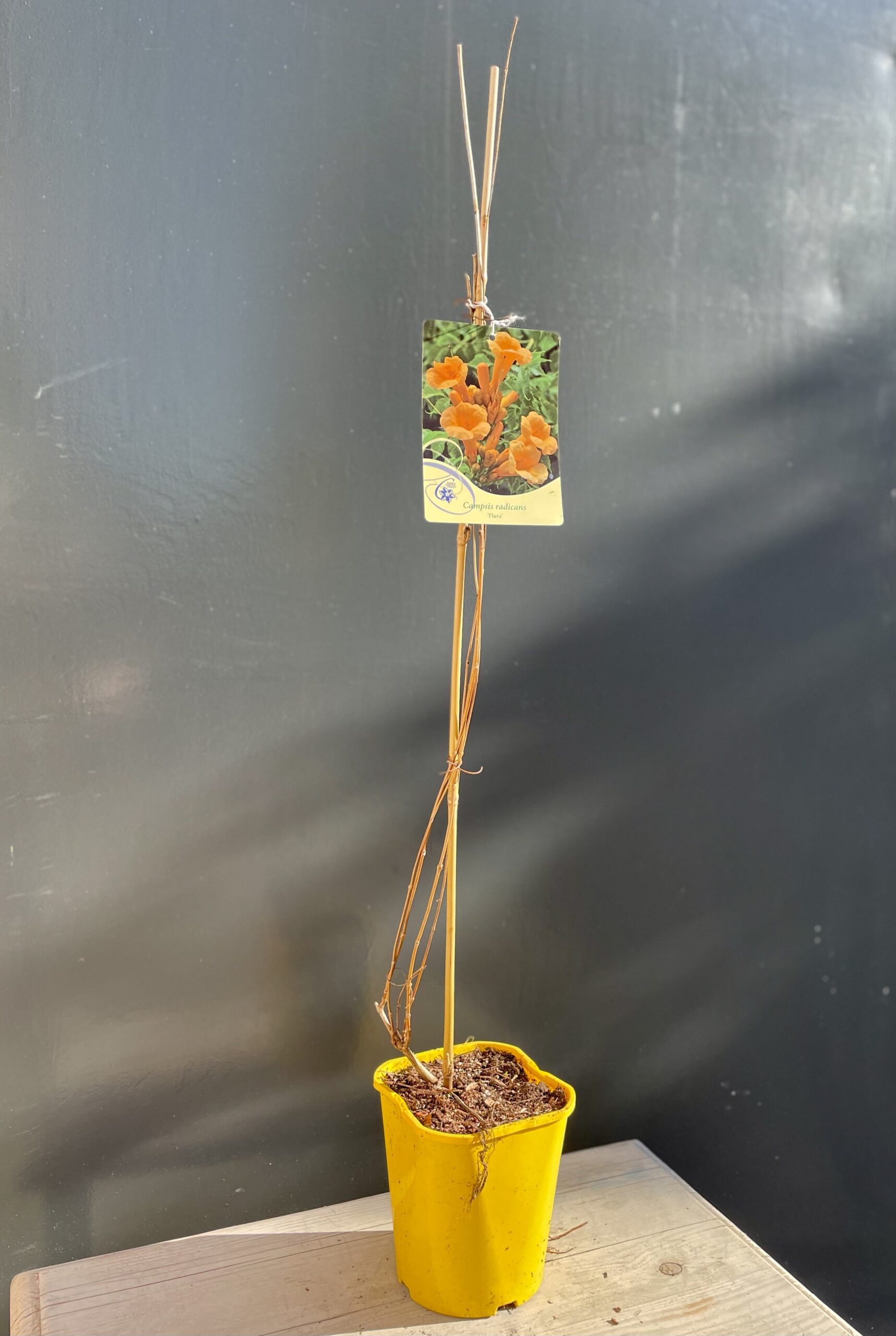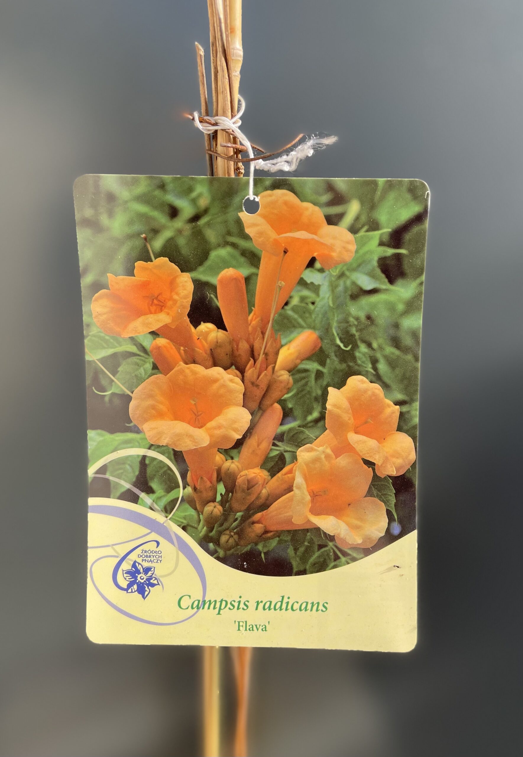 Widoczna na zdjęciu roślina: Campsis radicans Flava ma wysokość około 60 cm. Jej doniczka ma 17 cm średnicy oraz 13 cm wysokości.