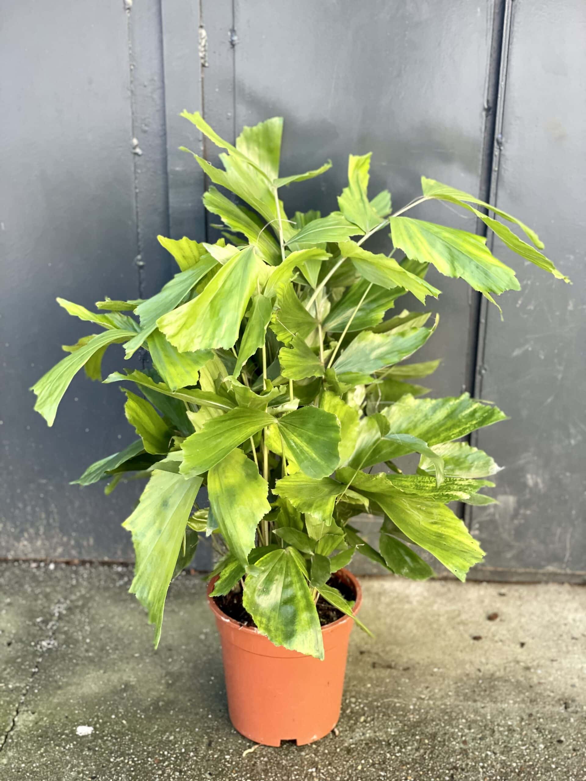 Pielęgnacja: Caryota mitis (Kariota łagodna / Palma orzechowa) to palma o zwartym pokroju i bardzo oryginalnym kształcie liści. Dla zdrowego wzrostu potrzebuje przesadzenia do przepuszczalnego podłoża - np. z dodatkiem piasku i perlitu. Kolejne przesadzenie wykonujemy, gdy korzenie wyrastają przez otwory drenażowe doniczki. Kariota łagodna uwielbia stale lekko wilgotną (ale nie błotnistą!) glebę i wysoką wilgotność powietrza (powyżej 60%). Warto ją ustawić w sąsiedztwie nawilżacza powietrza lub regularnie zraszać (ale spryskiwaczem o naprawdę delikatnej mgiełce oraz należy zadbać o odpowiednią cyrkulację powietrza). Palmy orzechowej nie powinniśmy przycinać - może to zahamować jej rozwój. Przed każdym podlaniem upewnijmy się, że podłoże dobrze przeschło. Lepiej używać również wody przefiltrowanej, gdyż palma kariota jest wrażliwa na chlor i fluor. Wiosną i latem, co 3-4 podlewanie, możemy zasilić palmę dawką zbilansowanego nawozu.
