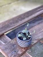 Widoczna na zdjęciu roślina: Ceropegia woodii ma wysokość około 10 cm. Jej doniczka ma 6 cm średnicy oraz 5 cm wysokości.