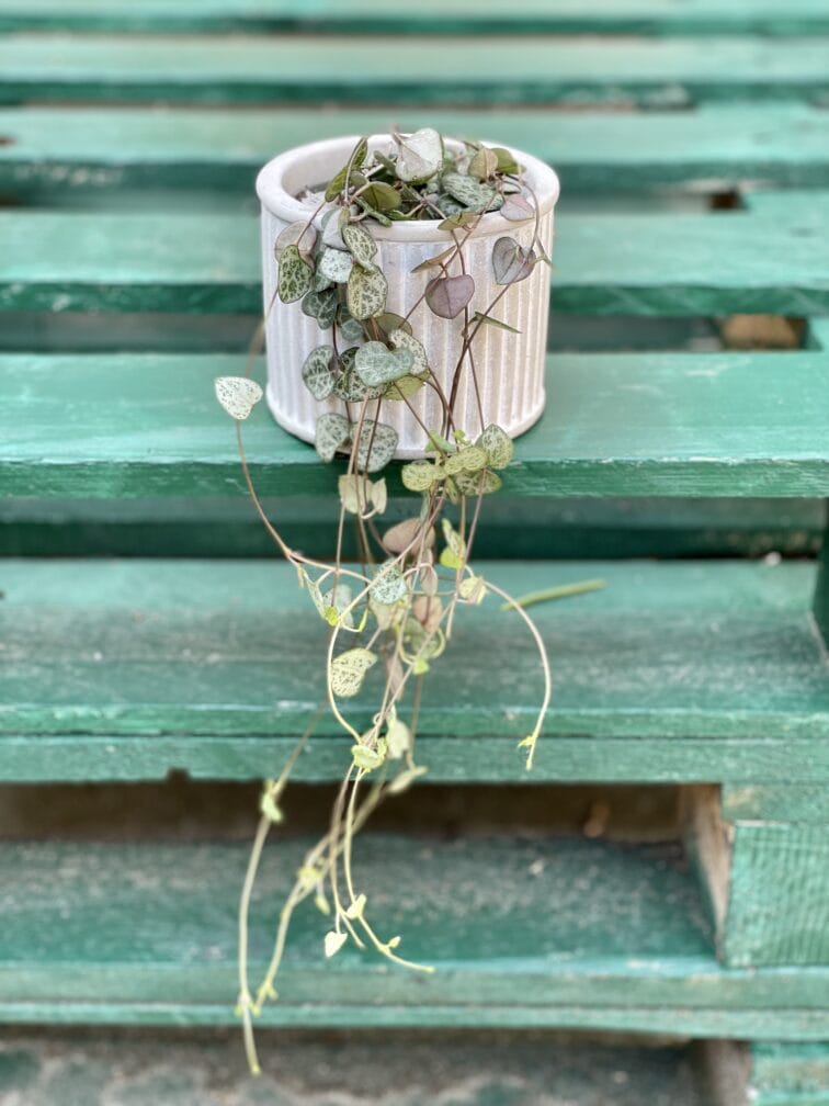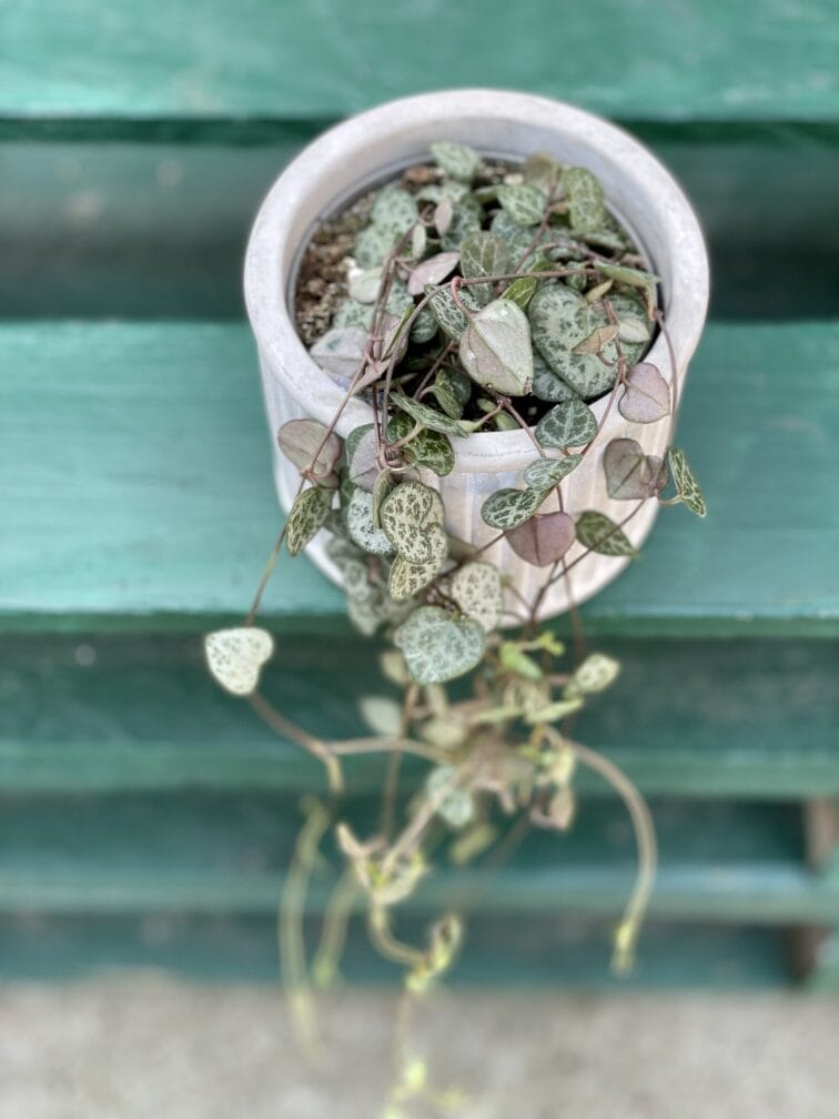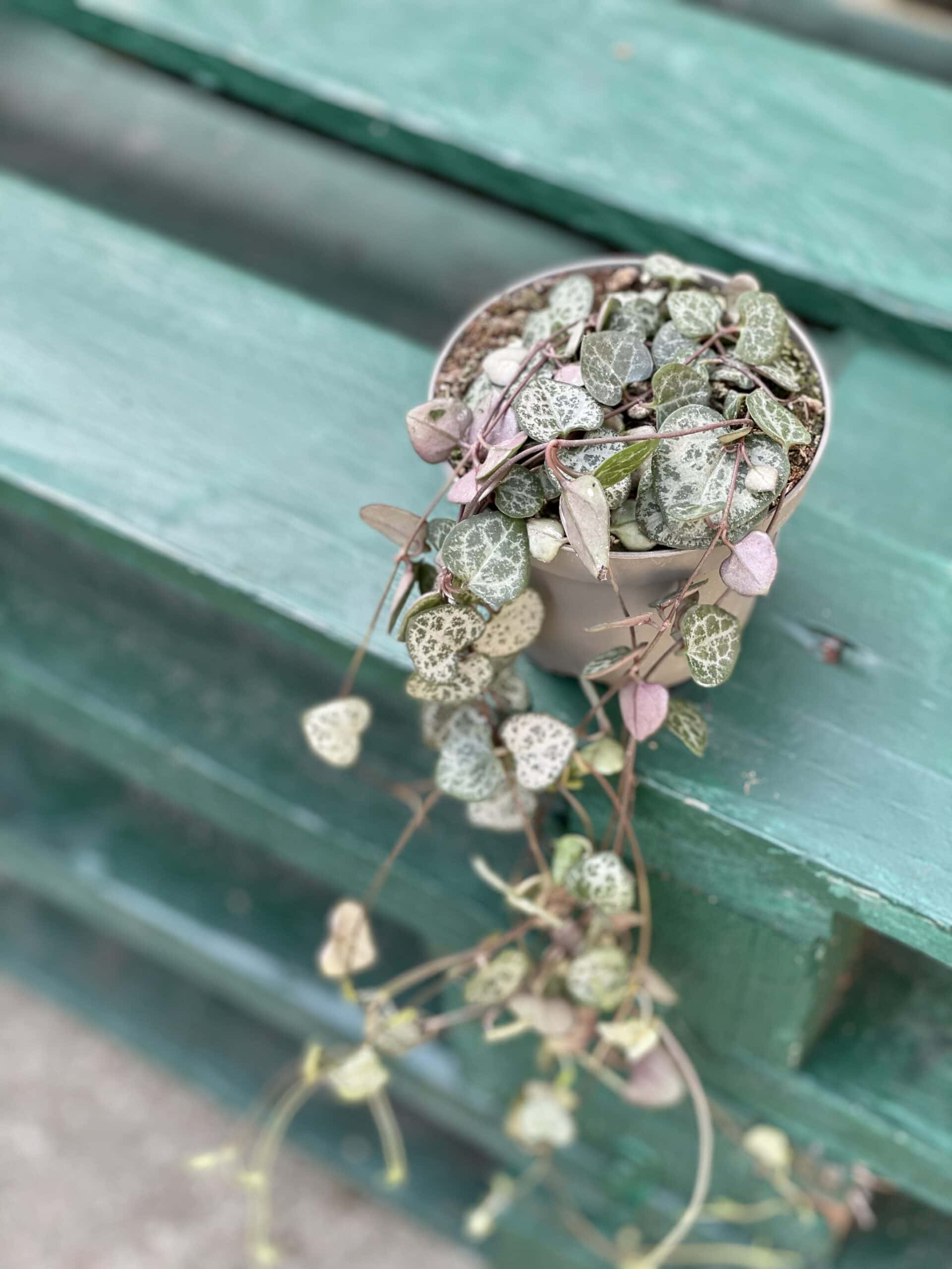 Ceropegia woodii (lampion chiński) to urokliwa roślina o dekoracyjnych listkach w kształcie serca i z koronkowym wzorem, idealna do zawieszenia w makramie. Jest sukulentem liściowym co oznacza dużą tolerancję na zaniedbanie i miłość do słonecznych stanowisk.