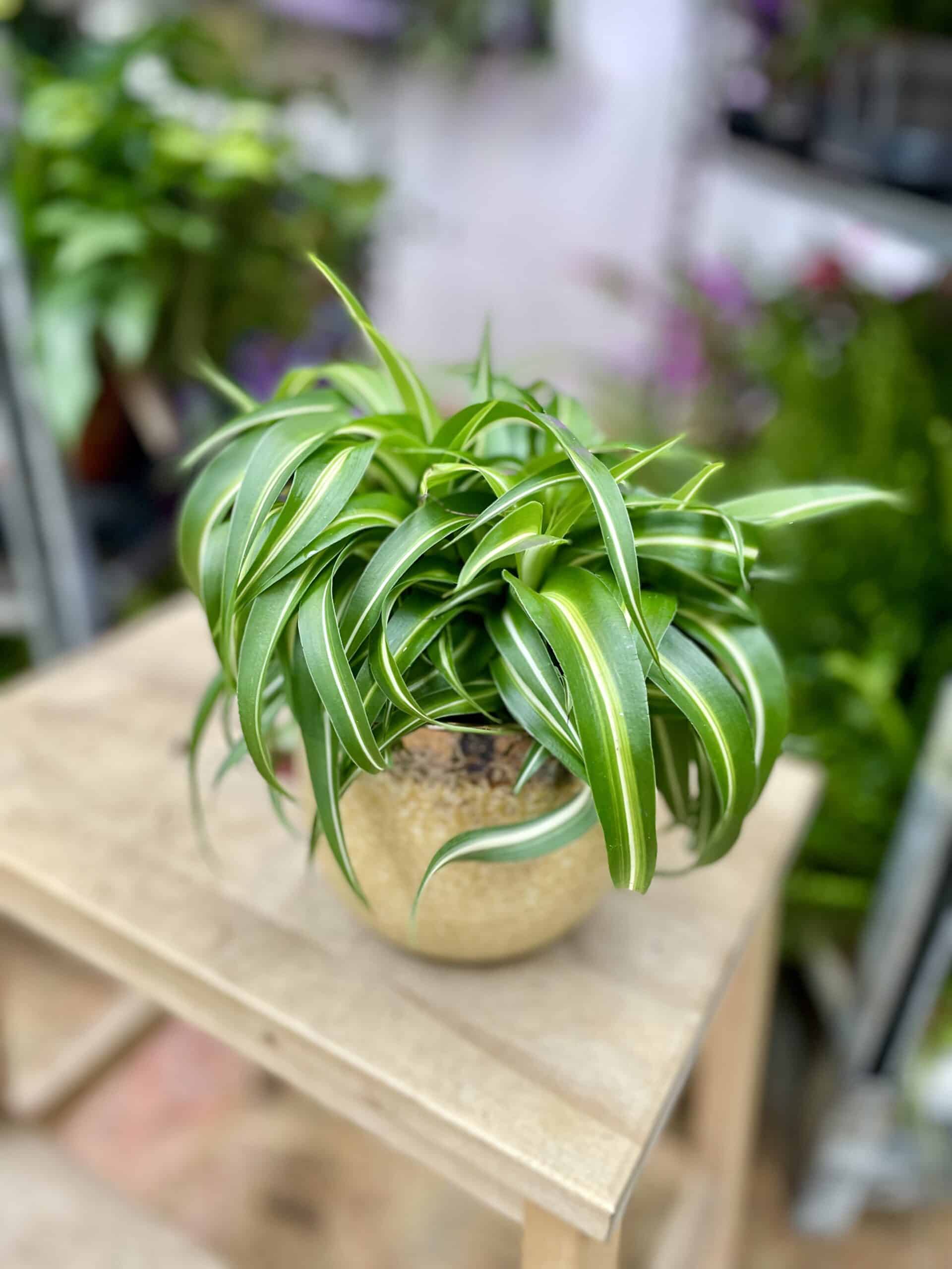 Zielistka Bonnie to łatwa w uprawie roślina doniczkowa, bezpieczna dla kota i psa. Coś co w niej kochamy, to poskręcane liście, tworzące burzę loków. Ta odmiana kwitnie żółtymi kwiatami.