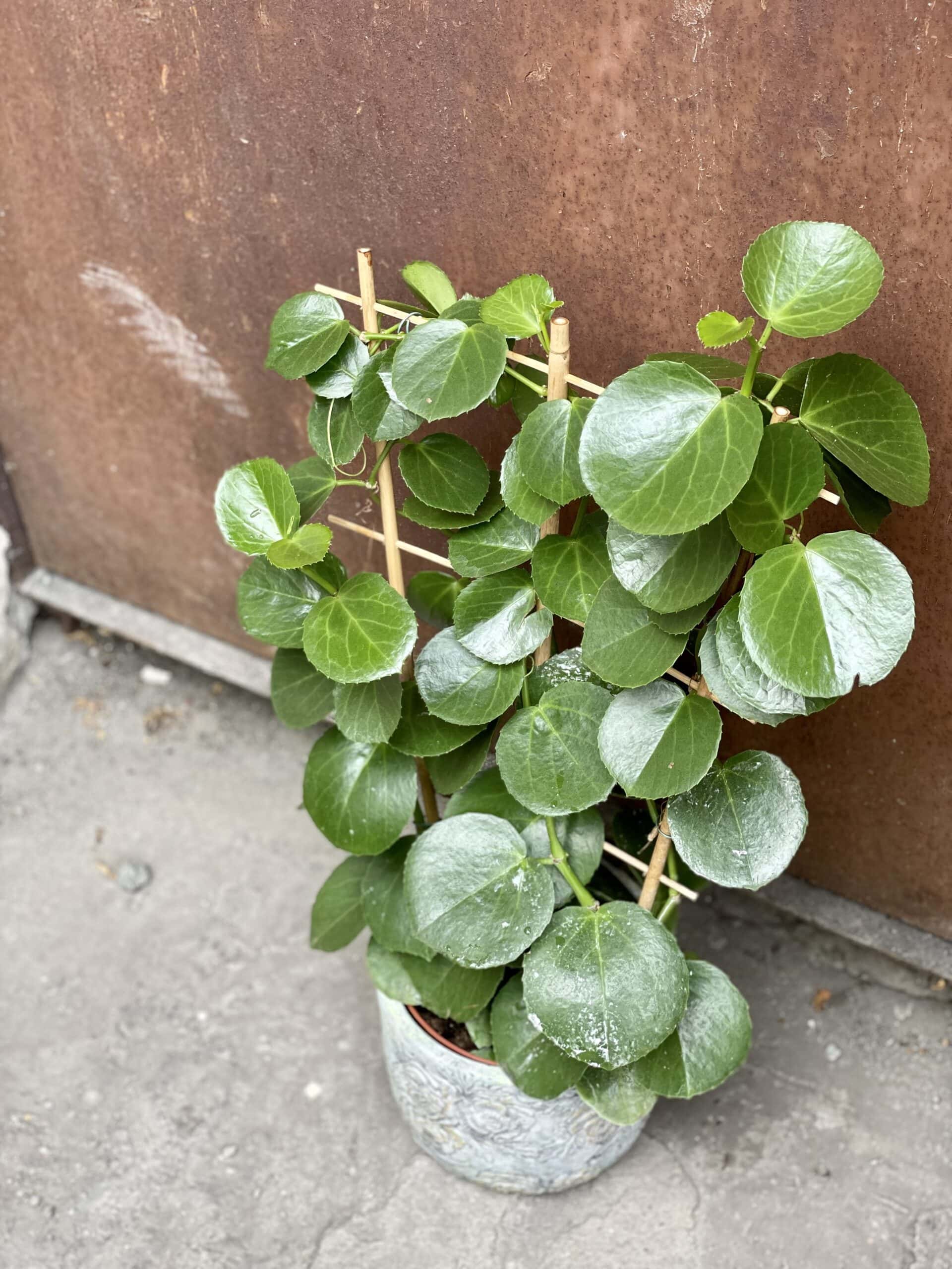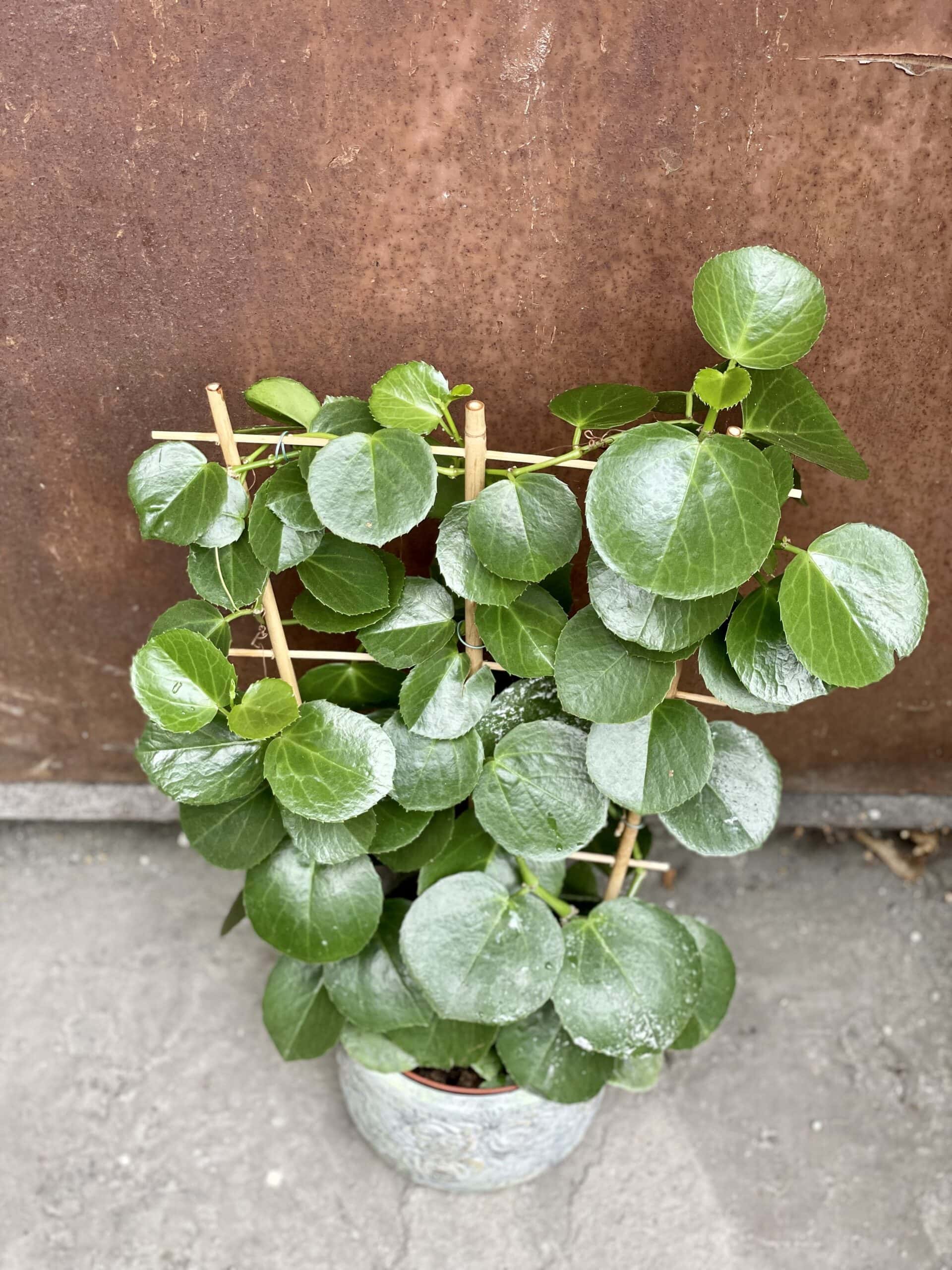 Widoczna na zdjęciu roślina: Cissus Rotundifolia ma wysokość około 60 cm. Jej doniczka ma 15 cm średnicy oraz 15 cm wysokości.
