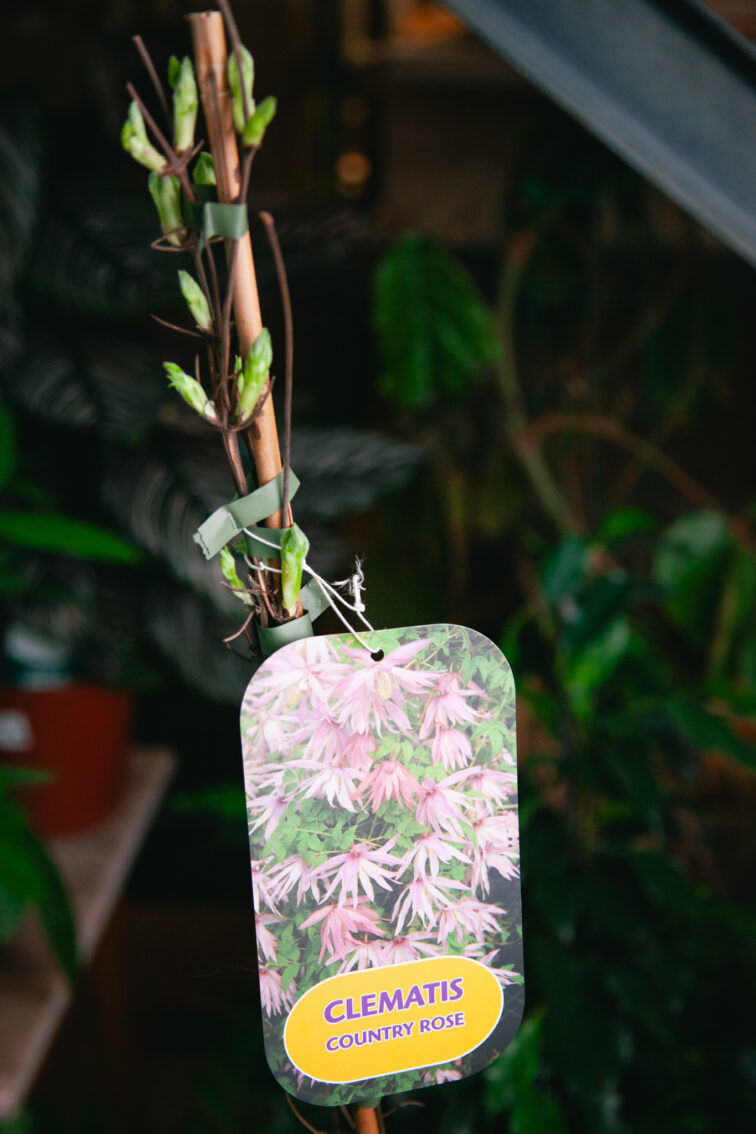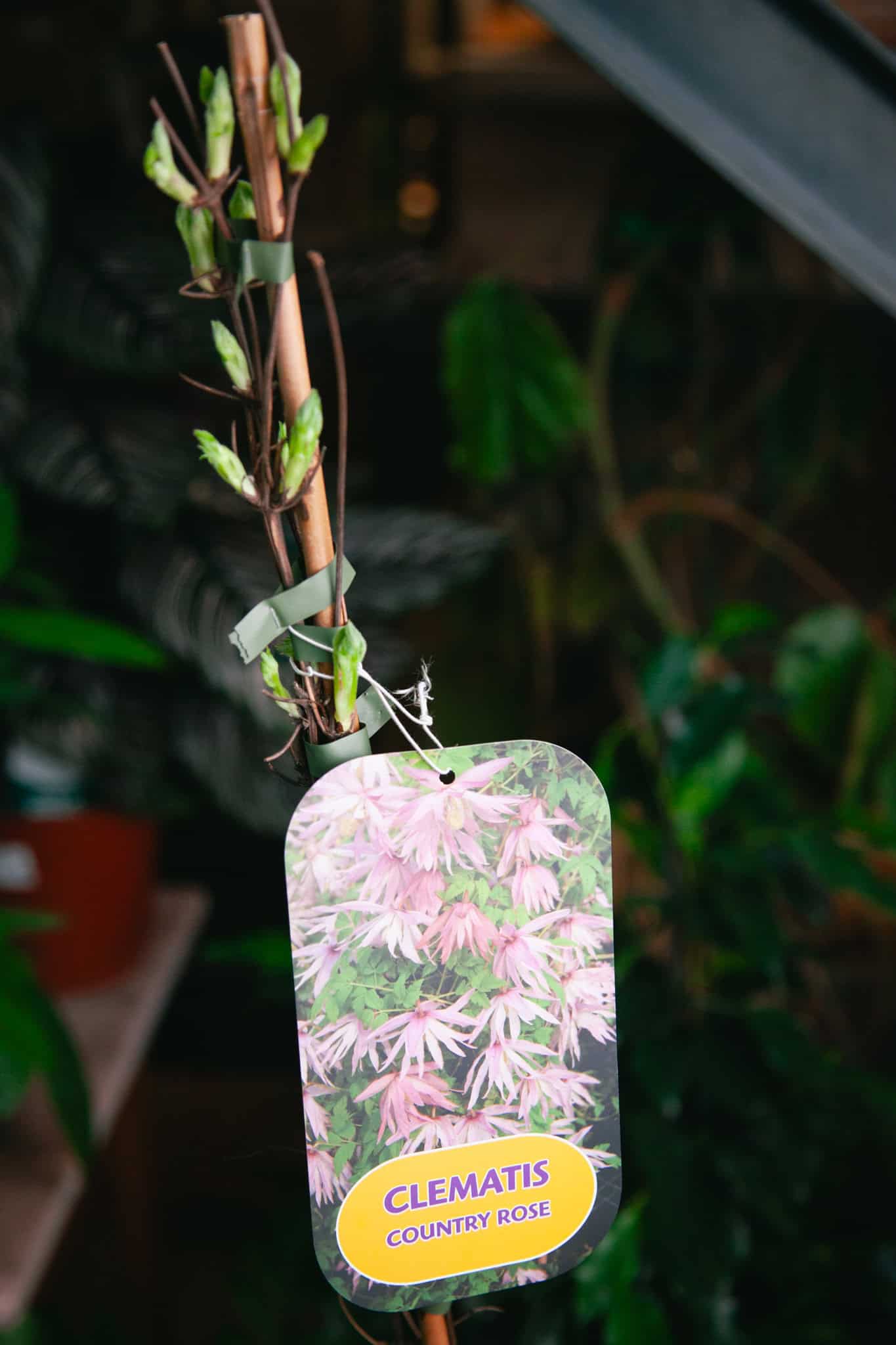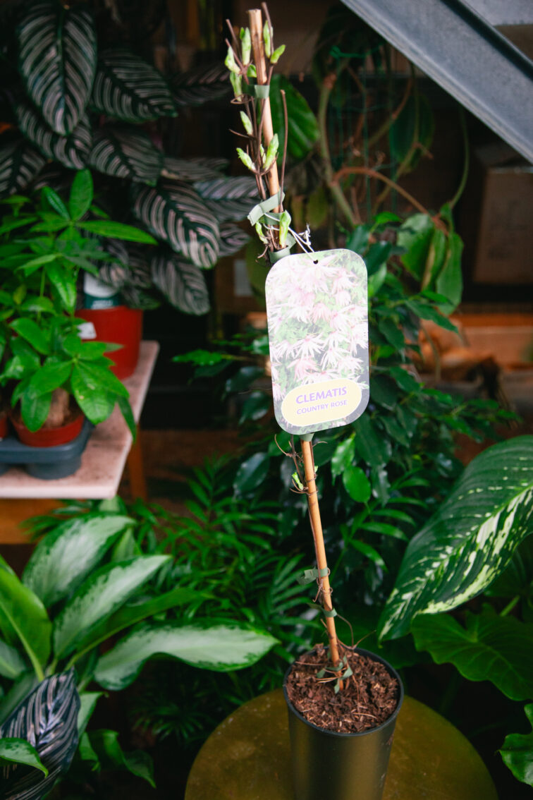 Widoczna na zdjęciu roślina: Clematis Country Rose ma wysokość około 70 cm. Jej doniczka ma 17 cm średnicy oraz 17 cm wysokości.