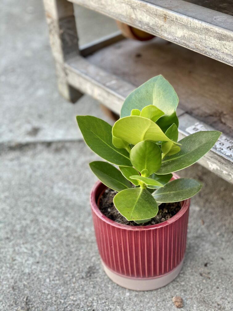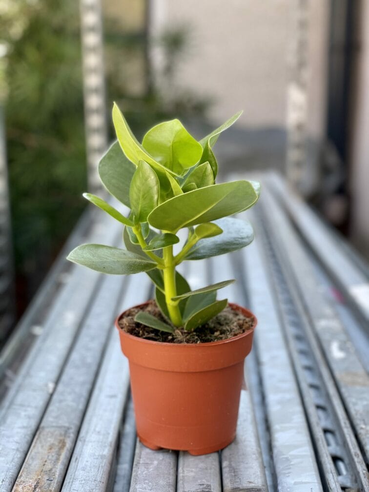 Widoczna na zdjęciu roślina: Clusia rosea Princess ma wysokość około 25 cm. Jej doniczka ma 12 cm średnicy oraz 12 cm wysokości.